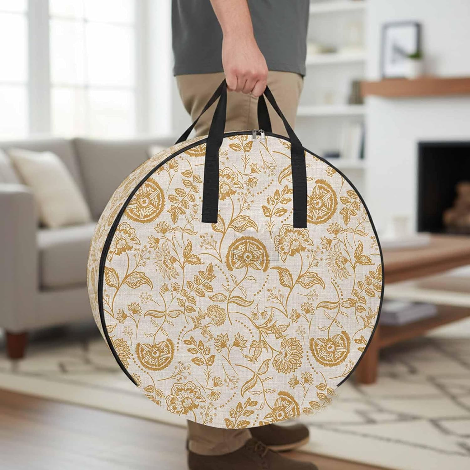 Reclaim Your Closet Space with the Round Storage Solution! Material: polyester Diameters: 24 inch, 30 inch, 36 inch Depth: 7 inches Package Includes: Round Storage Bag One Bag, Endless Possibilities: Whether you are swapping out your summer wardrobe, moving into a new dorm, or packing away holiday decorations, this bag has you covered. The circular design is uniquely suited for: Bedding: Comforters, quilts, sheet sets, and oversized pillows. Clothing: Winter coats, sweaters, and bulky ski gear. Home Decor: Holiday wreaths, garlands, and floral arrangements. Outdoor Gear: Camping blankets, sleeping bags, and beach towels. Dual Zippers: The high quality double zipper design allows the closet organizer to open wide from both sides, making it effortless to load and unload even the bulkiest comforters or wreaths. Reinforced Handles: Sturdy, reinforced handles are securely stitched to provide extra strength and a comfortable grip when carrying heavy loads or pulling the bag from under a bed. Clear Label Pocket: A transparent built-in label holder allows you to quickly identify the contents of each bag without ever having to unzip it, keeping your storage perfectly organized.