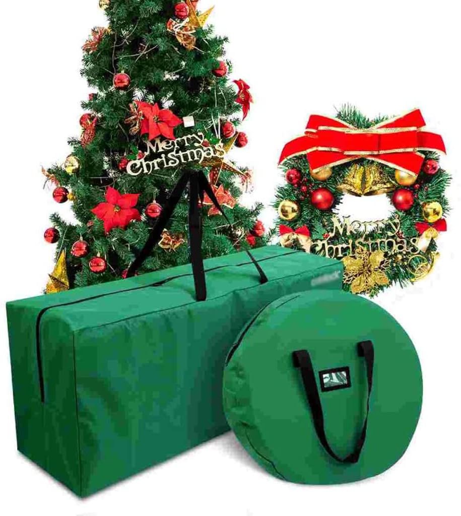 Color: Green. Material: cloth.133 x 37 x 53 cm/52 x 14.5 x 20.8 in (Christmas tree storage bag); 64 cm/25 in (round wreath diameter).assembly required. Simply place your tree or wreath in their bag, zip it with the heavy-duty, full length zipper.1 x Christmas Tree Storage Bag1 x Wreath Storage Bag