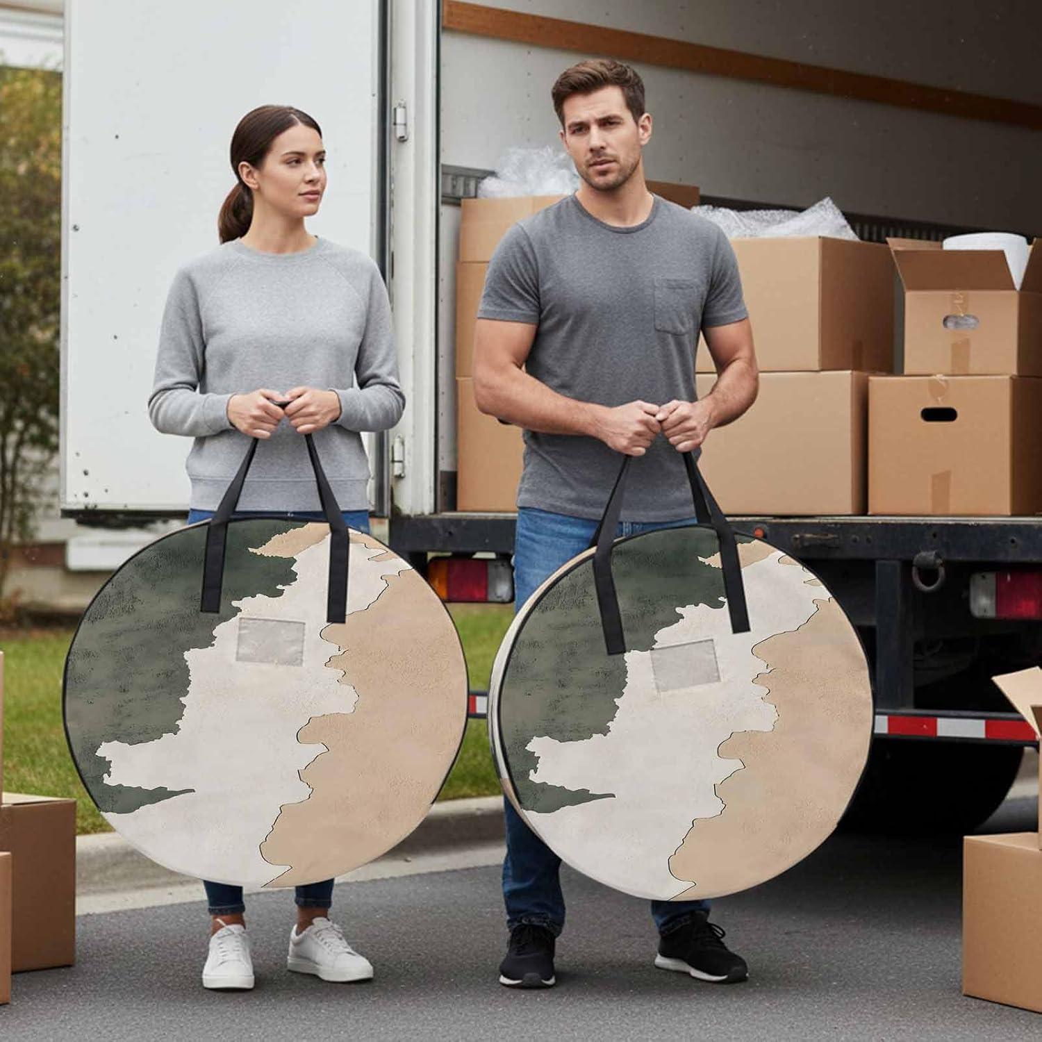 Reclaim Your Closet Space with the Round Storage Solution! Material: polyester Diameters: 24 inch, 30 inch, 36 inch Depth: 7 inches Package Includes: Round Storage Bag One Bag, Endless Possibilities: Whether you are swapping out your summer wardrobe, moving into a new dorm, or packing away holiday decorations, this bag has you covered. The circular design is uniquely suited for: Bedding: Comforters, quilts, sheet sets, and oversized pillows. Clothing: Winter coats, sweaters, and bulky ski gear. Home Decor: Holiday wreaths, garlands, and floral arrangements. Outdoor Gear: Camping blankets, sleeping bags, and beach towels. Dual Zippers: The high quality double zipper design allows the closet organizer to open wide from both sides, making it effortless to load and unload even the bulkiest comforters or wreaths. Reinforced Handles: Sturdy, reinforced handles are securely stitched to provide extra strength and a comfortable grip when carrying heavy loads or pulling the bag from under a bed. Clear Label Pocket: A transparent built-in label holder allows you to quickly identify the contents of each bag without ever having to unzip it, keeping your storage perfectly organized.