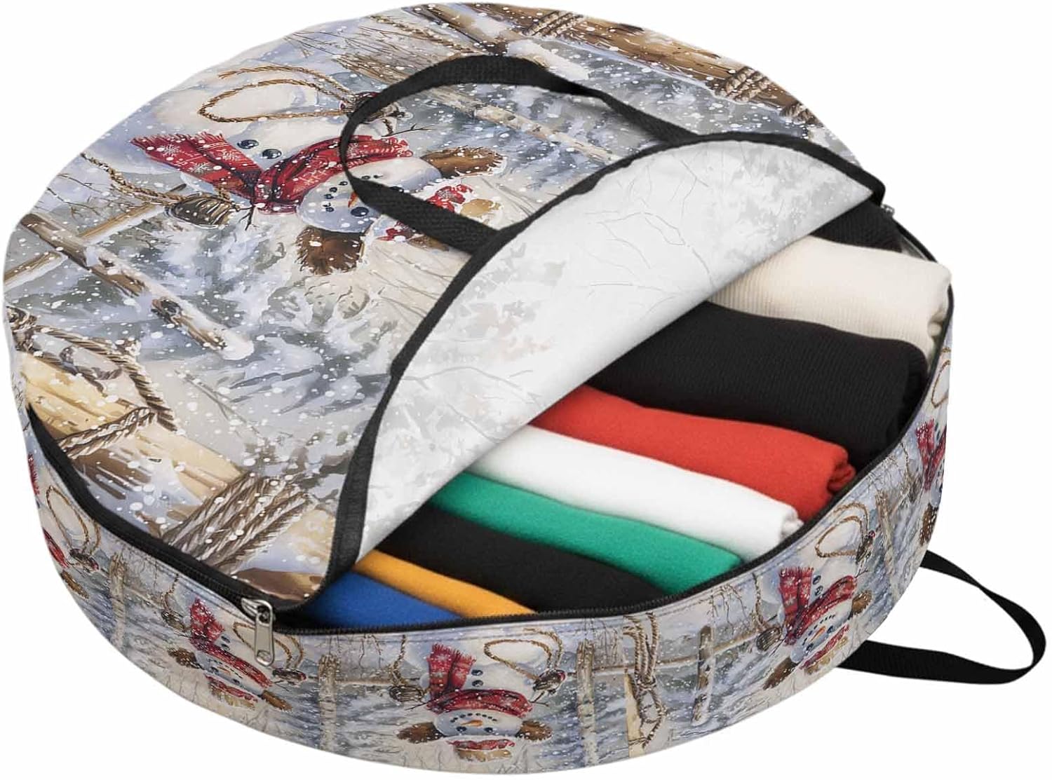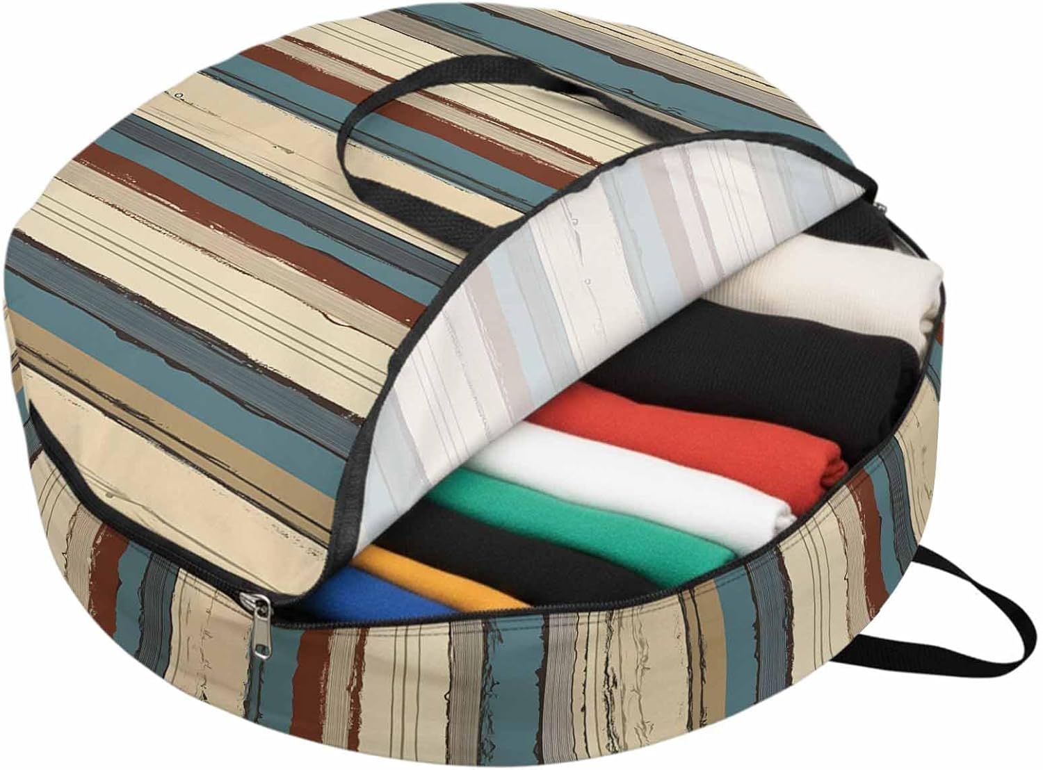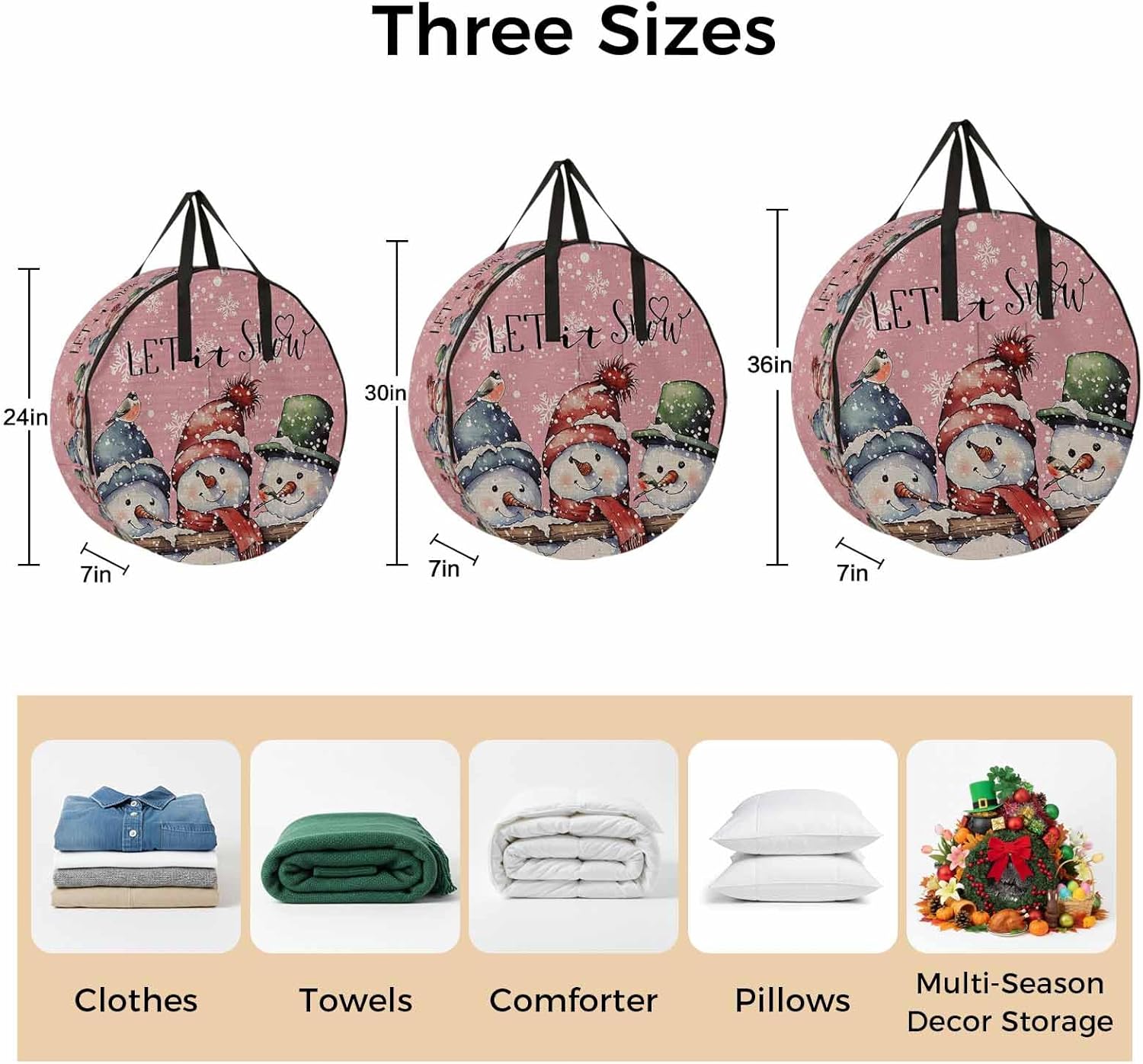Reclaim Your Closet Space with the Round Storage Solution! Material: polyester Diameters: 24 inch, 30 inch, 36 inch Depth: 7 inches Package Includes: Round Storage Bag One Bag, Endless Possibilities: Whether you are swapping out your summer wardrobe, moving into a new dorm, or packing away holiday decorations, this bag has you covered. The circular design is uniquely suited for: Bedding: Comforters, quilts, sheet sets, and oversized pillows. Clothing: Winter coats, sweaters, and bulky ski gear. Home Decor: Holiday wreaths, garlands, and floral arrangements. Outdoor Gear: Camping blankets, sleeping bags, and beach towels. Dual Zippers: The high quality double zipper design allows the closet organizer to open wide from both sides, making it effortless to load and unload even the bulkiest comforters or wreaths. Reinforced Handles: Sturdy, reinforced handles are securely stitched to provide extra strength and a comfortable grip when carrying heavy loads or pulling the bag from under a bed. Clear Label Pocket: A transparent built-in label holder allows you to quickly identify the contents of each bag without ever having to unzip it, keeping your storage perfectly organized.
