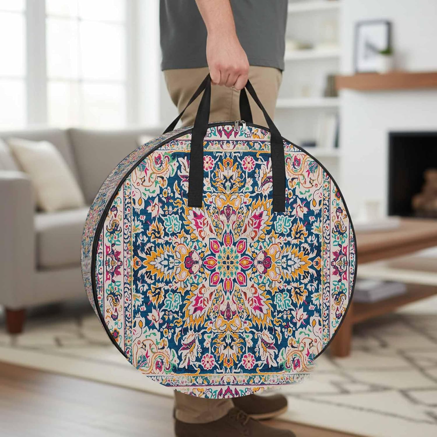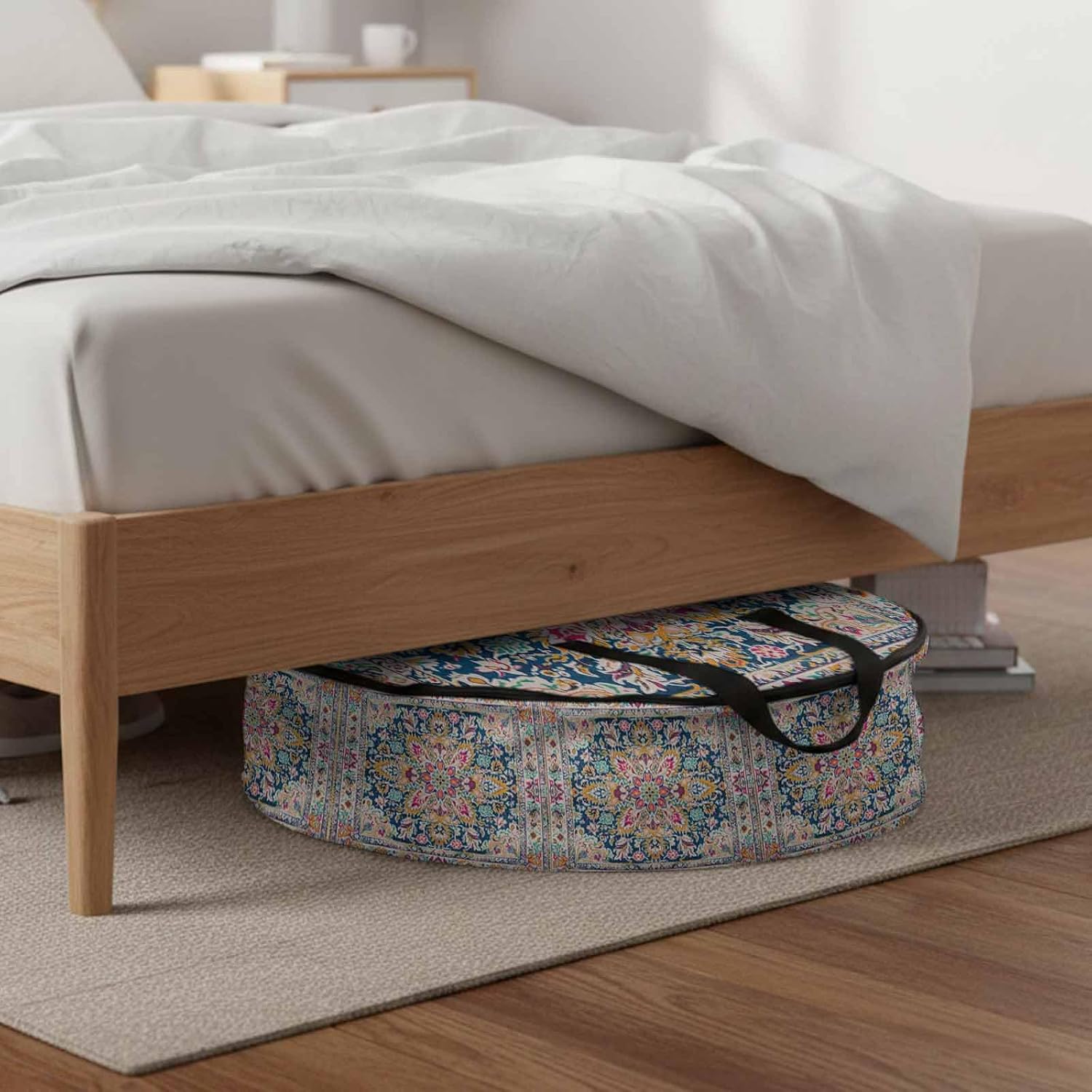 Reclaim Your Closet Space with the Round Storage Solution! Material: polyester Diameters: 24 inch, 30 inch, 36 inch Depth: 7 inches Package Includes: Round Storage Bag One Bag, Endless Possibilities: Whether you are swapping out your summer wardrobe, moving into a new dorm, or packing away holiday decorations, this bag has you covered. The circular design is uniquely suited for: Bedding: Comforters, quilts, sheet sets, and oversized pillows. Clothing: Winter coats, sweaters, and bulky ski gear. Home Decor: Holiday wreaths, garlands, and floral arrangements. Outdoor Gear: Camping blankets, sleeping bags, and beach towels. Dual Zippers: The high quality double zipper design allows the closet organizer to open wide from both sides, making it effortless to load and unload even the bulkiest comforters or wreaths. Reinforced Handles: Sturdy, reinforced handles are securely stitched to provide extra strength and a comfortable grip when carrying heavy loads or pulling the bag from under a bed. Clear Label Pocket: A transparent built-in label holder allows you to quickly identify the contents of each bag without ever having to unzip it, keeping your storage perfectly organized.