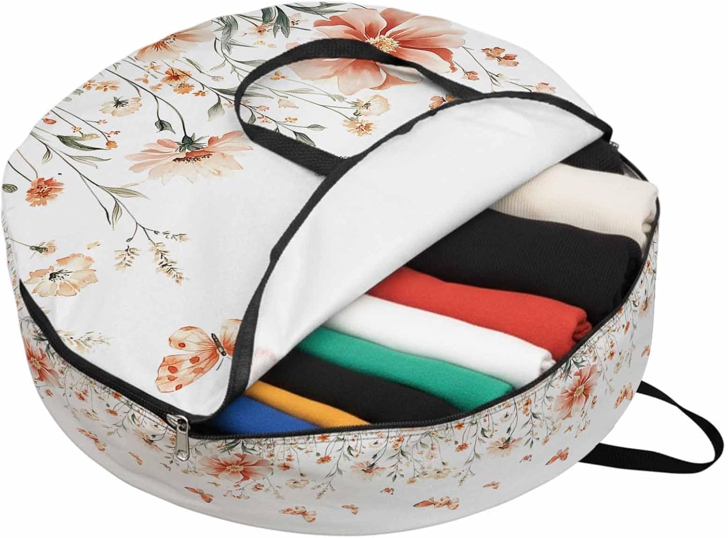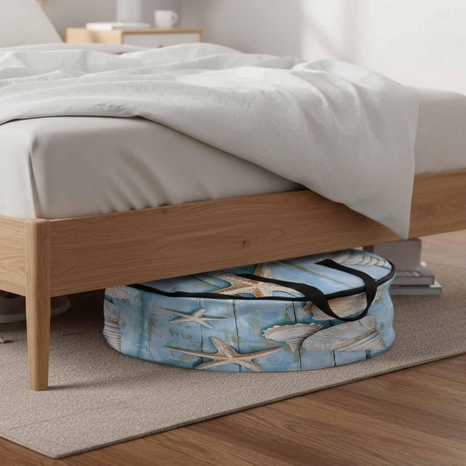 Reclaim Your Closet Space with the Round Storage Solution! Material: polyester Diameters: 24 inch, 30 inch, 36 inch Depth: 7 inches Package Includes: Round Storage Bag One Bag, Endless Possibilities: Whether you are swapping out your summer wardrobe, moving into a new dorm, or packing away holiday decorations, this bag has you covered. The circular design is uniquely suited for: Bedding: Comforters, quilts, sheet sets, and oversized pillows. Clothing: Winter coats, sweaters, and bulky ski gear. Home Decor: Holiday wreaths, garlands, and floral arrangements. Outdoor Gear: Camping blankets, sleeping bags, and beach towels. Dual Zippers: The high quality double zipper design allows the closet organizer to open wide from both sides, making it effortless to load and unload even the bulkiest comforters or wreaths. Reinforced Handles: Sturdy, reinforced handles are securely stitched to provide extra strength and a comfortable grip when carrying heavy loads or pulling the bag from under a bed. Clear Label Pocket: A transparent built-in label holder allows you to quickly identify the contents of each bag without ever having to unzip it, keeping your storage perfectly organized.