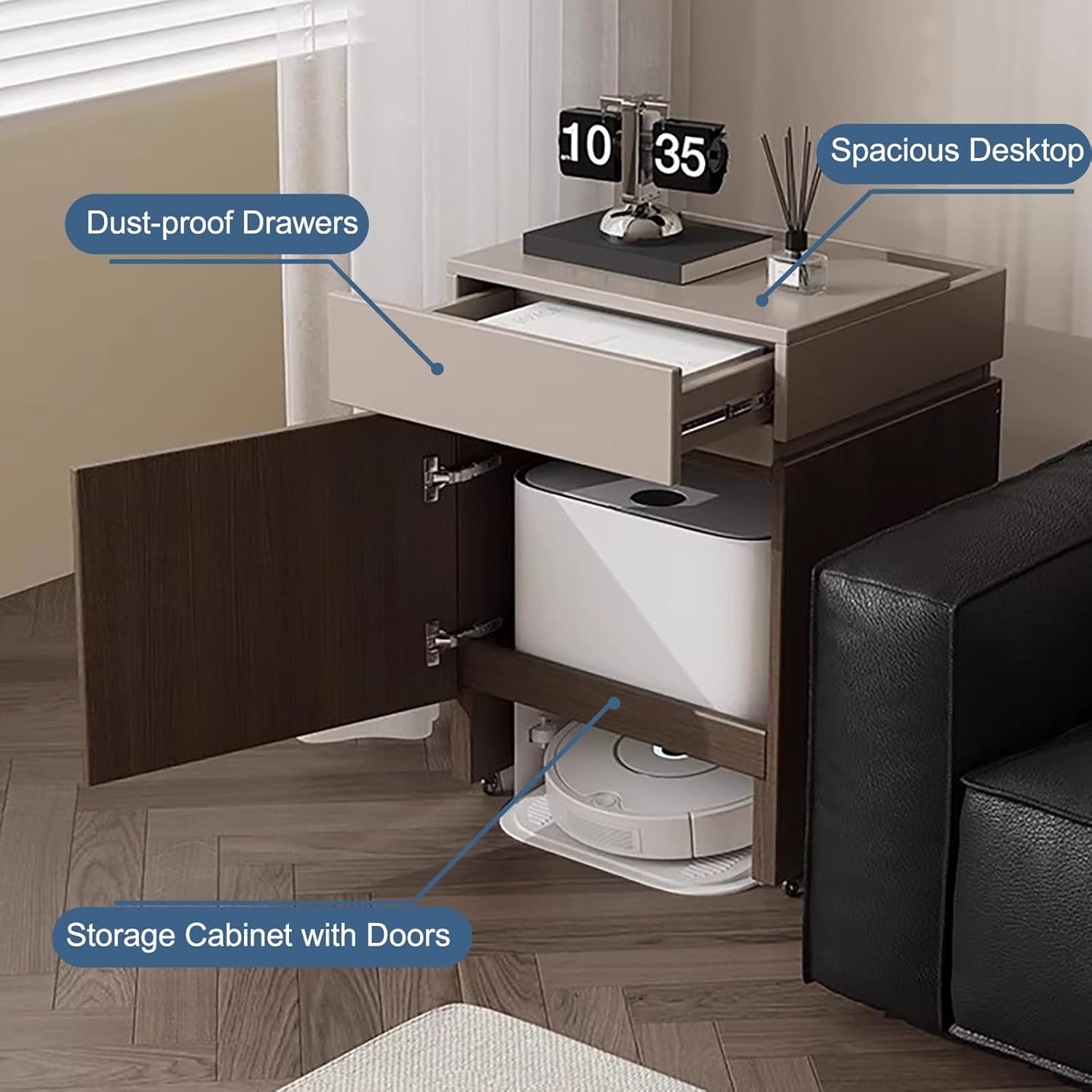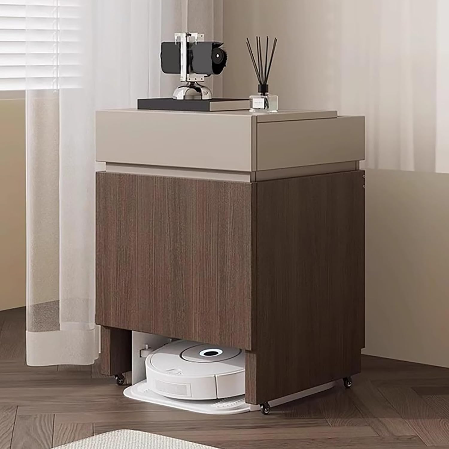 ==》The Robot Vacuum Hidden Cabinet combines stylish design with functional storage, making it an ideal addition to any modern home. ==》Made of solid wood eco-board, it provides reliable support and stability for various items. This living room vacuum storage cabinet has a spacious interior that can store various daily necessities and most models of sweeping robots.==》Whether placed in a living room, hallway, or office, this piece keeps your robot vacuum out of sight yet always ready for action.【Features】*Multiple storage compartments keep your belongings organized*Includes open compartments and pull-out drawers for easy access and versatile use*Soft-cushioned hinges ensure smooth and quiet operation*Bottom cabinet with doors hides your robot vacuum when not in use*Solid wood eco-board construction resists deformation and is odor-free and safer to use【Specifications】*Product Name: Robot Vacuum Storage Cabinet*Material: Solid Wood Eco-board*Storage Areas: Top display stand, open compartments, drawers, bottom cabinet with doors*Suitable Locations: Living room, laundry room, entryway, bedroom*Assembly Required: Yes*Package: 1 * Robot Vacuum Hidden Cabinet
