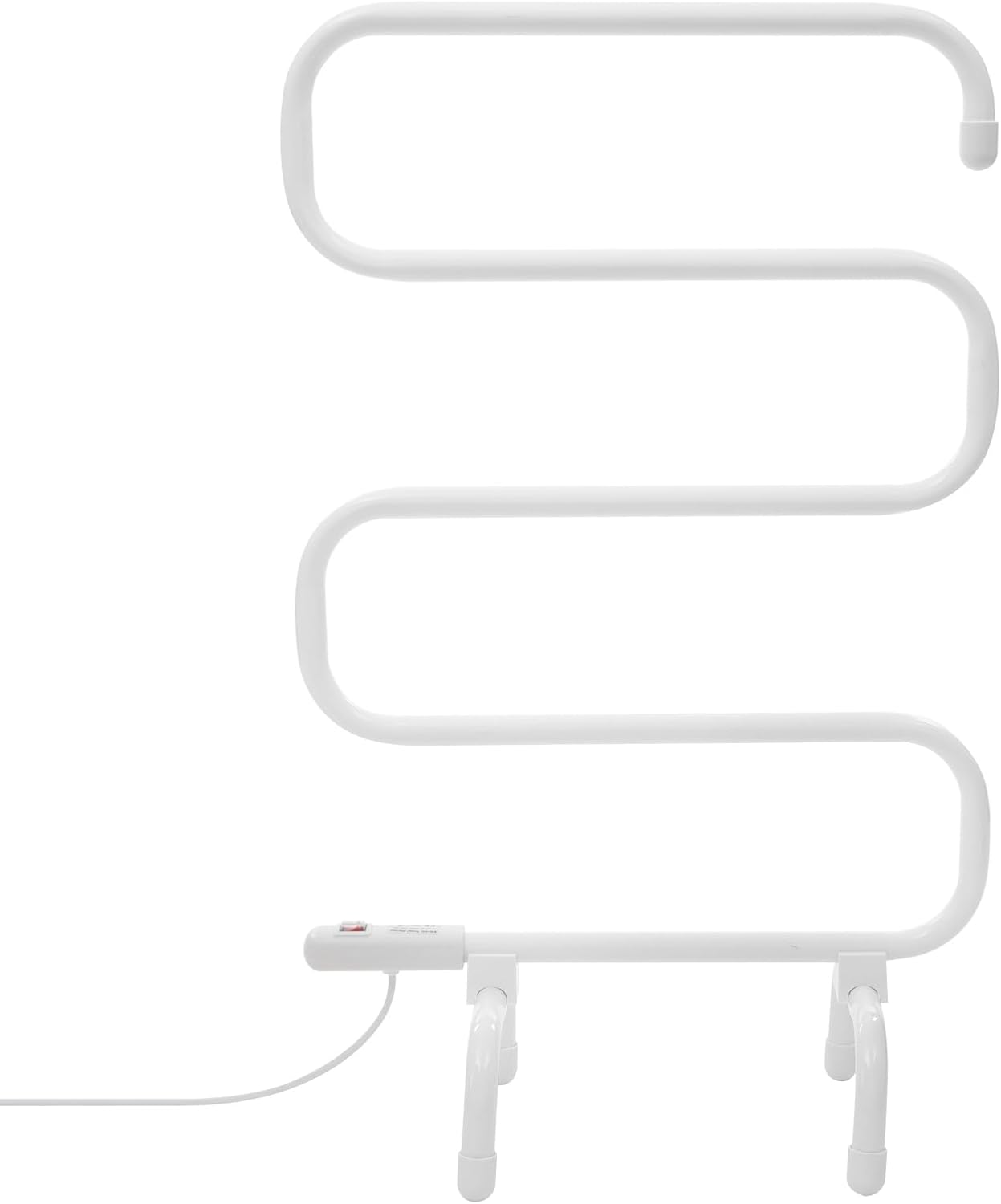 DescriptionOur electric towel warmer,the combination of high-class material and exquisite craftsmanship makes it sturdy and durable. Constant temperature heating can quickly dry your clothes and towels, keeping them away from moisture. With its generous appearance, it can embellish your bathroom.Details4 Feet: Equipped with four feet, the product can be securely placed on the ground without easily tipping over. Smooth Edges: They can protect your hands and towels from getting scratched and improve the safety of use.ApplicationThis product can be used for bedrooms, bathrooms, kitchens, laundry rooms, hotels, spas, swimming pool locker rooms, and more. It is ideal for hanging and organizing your face towels, bath towels, baby clothes, baby blankets, and underwear. It can be used in all seasons (spring, summer, autumn, and winter).SpecificationsStyle: ModernColor: White Material: Low-carbon SteelProcess: Plastic SprayingShape: S-shapeAssembly Required: Yes Mount Type: Free StandingSwitch Waterproof Rating: IPX4Power Source: Corded ElectricPlug Standard: US StandardVoltage: AC 100-120VPower: 100WFrequency: 50/60HzTotal Load Bearing Capacity: 10kg/22.05 lbs Heating Tubes: 5Surface Temperature: 45-55°C/113-131°FConstant Temperature: 45-55°C/113-131°FDrying Space: 3m/9.84ftTube Diameter: 25.4mm/1inPower Cord Length: 1.4m/4.59ftProduct Size: 54.5*30*92cm/21.46*11.81*36.22inPackage Size: 83*60*3cm/32.68*23.62*1.18inGross Weight: 3.4kg/7.5 lbsNet Weight: 3.23kg/7.12 lbsPackage Included1* Electric Towel Warmer1* English Manual All Accessories for Installation