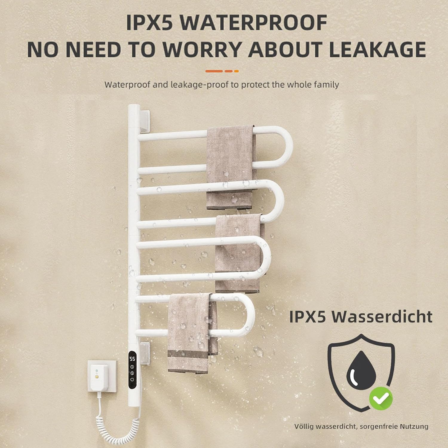 We provide you with an advanced heated towel rack to keep your clothes and towels in constant,gentle temperature even in cold weather.With its help,you are allowed to be free from unhygienic troubles. Thanks to the timer design,it ensures convenient and secure use in your daily life. Use this versatile heated towel racks for bathroom in different locations and all year round!Great to put in multiple locations such as bathrooms, mudrooms,laundry rooms, hotels, spas, gyms, fitness centers, or country clubs!In addition to warming your towels on cold, rainy, or snowy days,you can use the heated towel rack to quickly dry bathing suits. Specifications Name:Heated towel racks for bathroom Item size: 16.9*30.7*3.5in/ 43*78*9cm Temperature range:30-70 °c Timing range: 1-9h Finish:Baking paint surface Voltage:110 v-240v Power: 135w Package included: 1 x heated towel rack 1 x pack of fixing part(nail free adhesive is not included in the scope of supply but is easy to purchase) 1 x english manual Kind tips: It is recommended that hard wiring be installed by professionals for your safety.