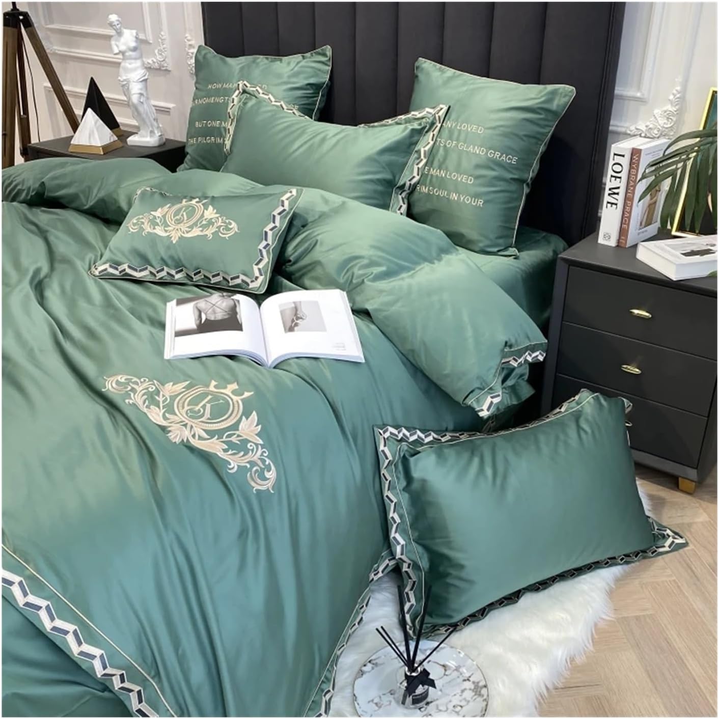 Queen Size 4pcs Includes: Duvet Cover (1 piece): 90"W x 90"L; Pillow Shams(Standard 2 pieces): 20"W x 26"L;1 Flat Sheet (102”x 90”) Duvet;/comforter inside is not includedKing Size 4pcs Includes: Duvet Cover (1 piece):104"W x 90"L; Pillow Shams( 2 pieces): 20"W x 36"L;1 Flat Sheet (108" x 102") ;Duvet/comforter inside is not included1 cm = 0.3937008 inches