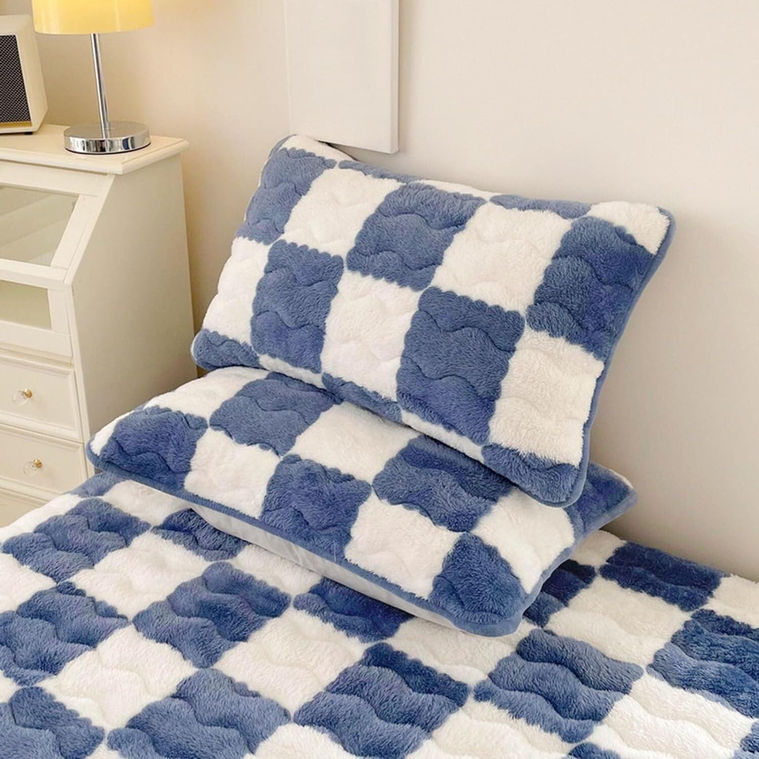 Description Product information: Product name:Milk Velvet Checkered Bedding Mattress Cover Color: 8 colors Size: 90*200cm/35.4*78.7IN 120*200cm/47.2*78.7IN 150*200cm/59.1*78.7IN 180*200cm/70.8*78.7IN 200*220cm/78.7*86.6IN Product Contents: 1* Milk Velvet Checkered Bedding Mattress Cover Note: 1. Please allow slight size difference due to different manual measurements. 2.Due to different monitors and lighting effects, the actual color may vary slightly from the image.