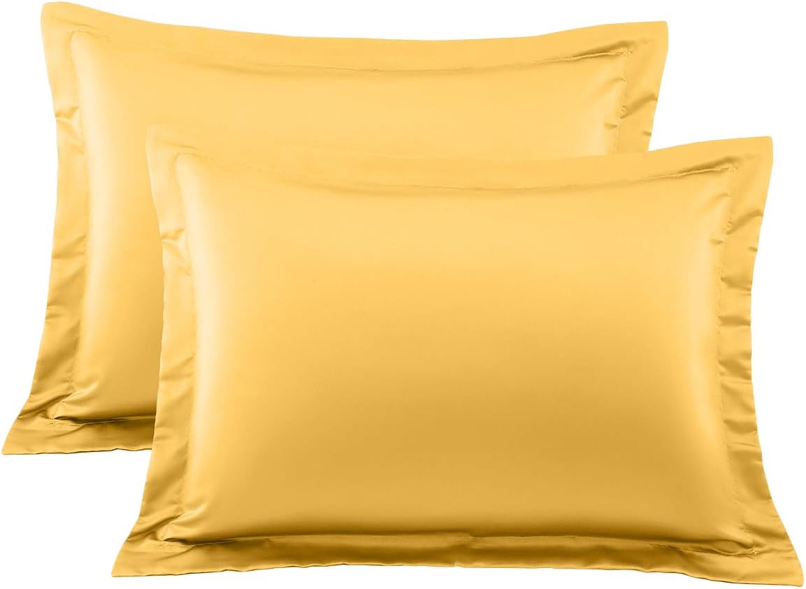 Upgrade your bedding with this set of 2 Egyptian Cotton Pillow Shams. Made from 100% Egyptian cotton with a smooth 400-thread count, these shams offer a luxuriously soft, breathable feel. The sateen weave adds a subtle sheen, while the envelope closure keeps your pillow neatly tucked in. Durable, elegant, and easy to care for—perfect for everyday luxury.