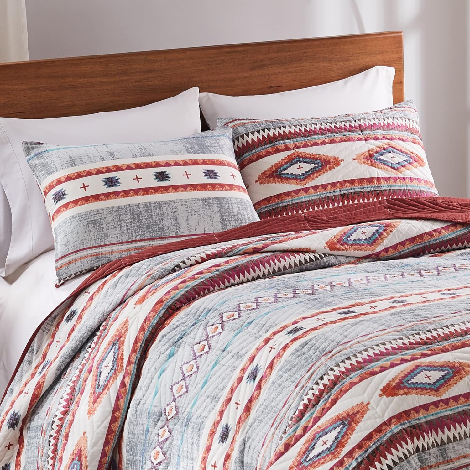 Summon the spirit of the Great Southwest with the Kiva collection from Greenland Home Fashions. Enhancing your Boho surroundings, Kiva features Native American art motifs in neutral colors to coordinate with a wide variety of interior décor themes and geometric diamond quilting that compliments the print and completes the look. Distressed effect gives a rustic, stone washed appearance for relaxed, casual living. Reverses to an all-over apple butter brown. Includes one pillow sham. Double down on the look and buy two. Dimensions: Standard sham measures 20x26 inches; King sham measures 20x36 inches (all dimensions +/- 1 inch). Machine Wash. Imported. Machine washable. 100% brushed microfiber face and back with polyester fill. Imported.