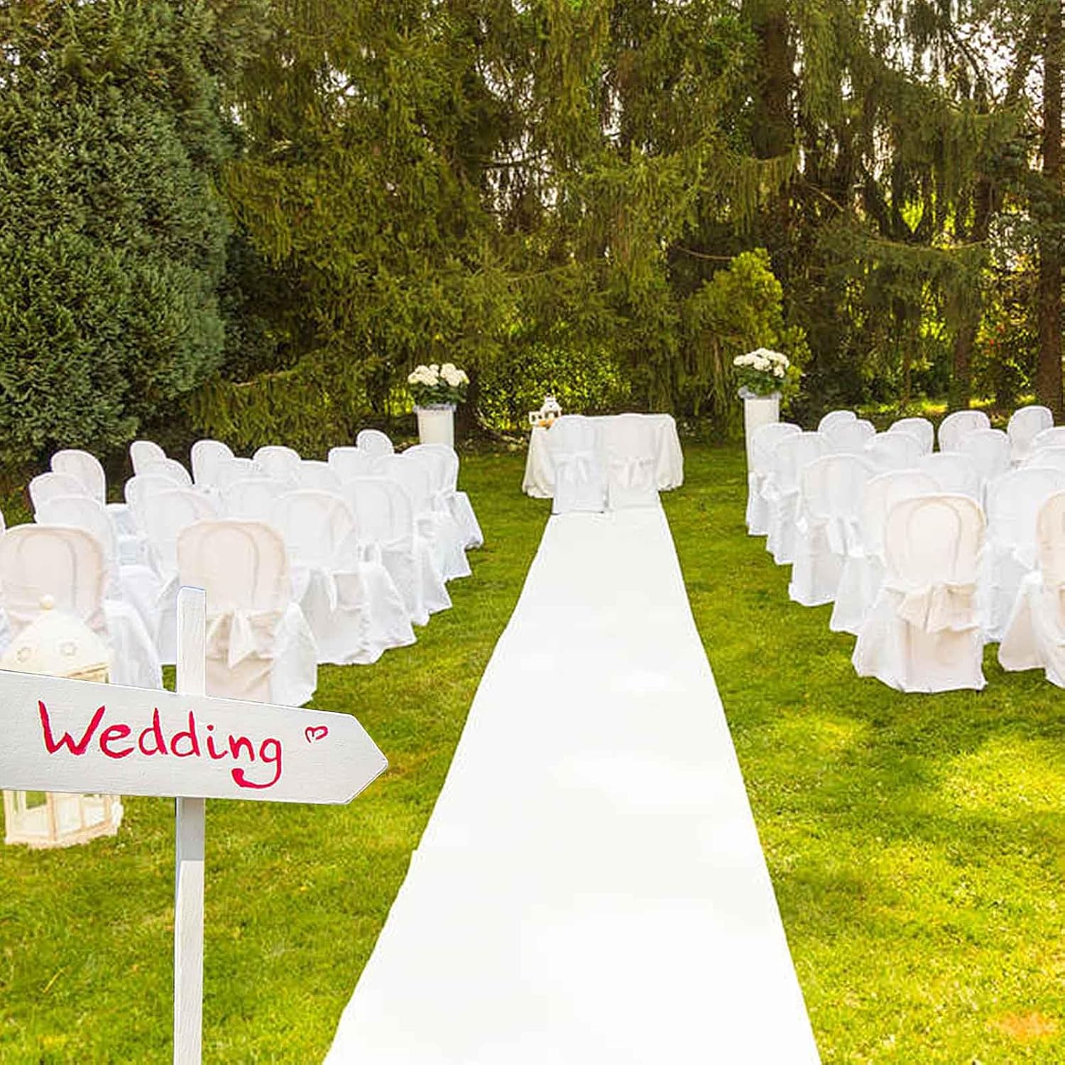 Features:Easy to use:You can use the rug tape to tape the runway rug to the floor, you don't have to worry about blowing it up and tripping over it. This aisle runner will look great with your church, garden, or beach wedding, add that finishing touch to your special day!Easy to clean and store:This white runway rug is easy to clean, all you need to do is wipe up dirt or spills with a damp cloth and mild detergent, conveniently rolled up for storage for next use.Overlapping use:If the carpet is not wide enough, you can overlap it to extend the coverage area, which can bring more convenience for your wedding.Specifications:Material: high quality polyester (each aisle runner is resistant to tearing).Thickness: 2 mm, thick and durable (if you need a smaller length our wedding aisle runner can be easily cut with scissors to any desirable length).Color: WhitePackage includes:1 x White carpetNotes:Manual measurement, please allow slight errors on size.The color may exist slight difference due to different screen displays.