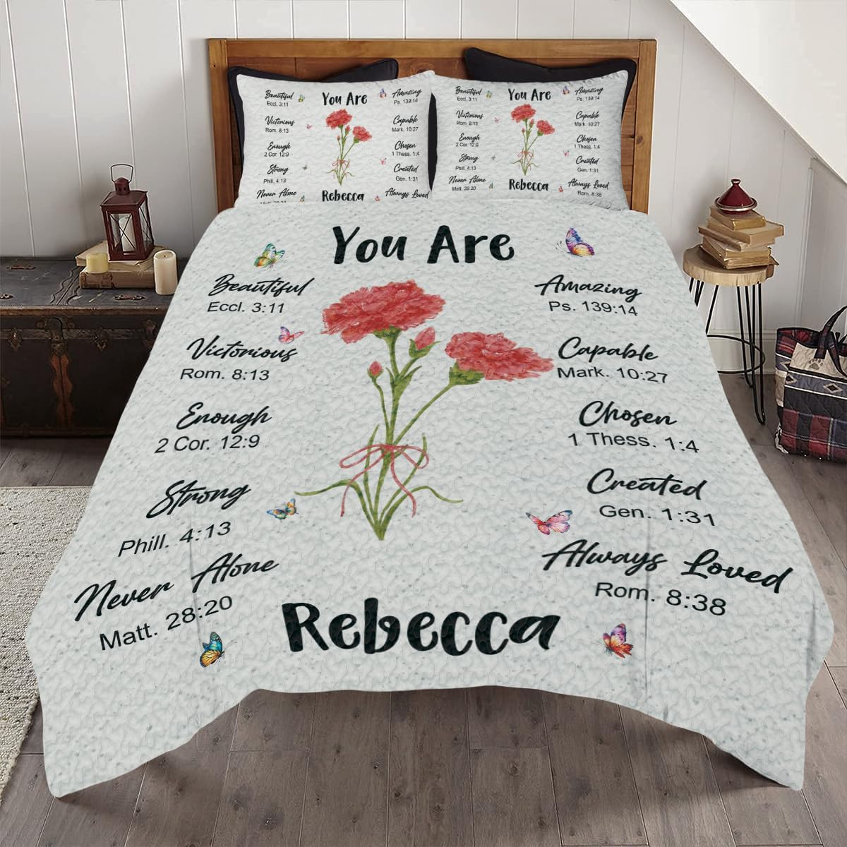 ๐ Inspire Your Faith with Our Christian QuiltEmbrace the message of faith, peace, and hope with this Christian Quilt, designed to add warmth and spiritual beauty to your bedroom. Featuring uplifting scripture verses and an elegant cross design, this quilt is more than just bedding โ itโs a daily reminder of your faith and devotion. Crafted with high-quality materials, it ensures comfort and durability for years to come.๐ High-Quality Materials for Ultimate ComfortMade from soft and breathable fabric, our Christian quilt provides warmth and comfort all year round. Its premium construction ensures that you can enjoy cozy nights while embracing a peaceful atmosphere in your home.๐ The Perfect Christian GiftThis Christian quilt is an excellent gift choice for friends, family, or loved ones who cherish their faith. Whether it's for a birthday, holiday, or special occasion, this quilt makes a meaningful gift that inspires and touches hearts.๐ก Versatile & Beautiful Bedroom DรฉcorThis quilt is designed to fit various bedroom themes, making it the ideal addition to any home. Its simple yet powerful faith-based design adds a welcoming, spiritual touch to your bedroom, making it the perfect choice for both men and women.๐ Different Sizes for the Perfect FitWe offer this quilt in multiple sizes to fit your needs: - **Throw (60"x70")** - **Twin (68"x86")** - **Full (80"x90")** - **Queen (90"x90")** - **King (102"x91")๐ Add to Cart Today and Experience Comfort and Faith!Bring peace and inspiration into your home with this Christian Quilt. Click Add to Cart now to enjoy comfort, beauty, and spiritual warmth every night!