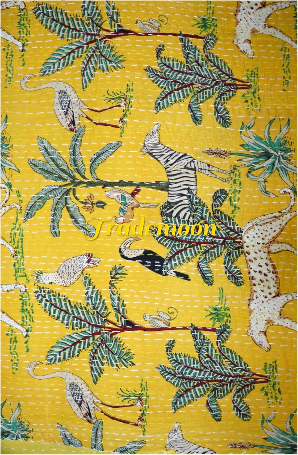 Our Indian Kantha Quilt are made of 100% cotton using animal print designs and a small running stitch that runs across the length and width of the blanket.These gorgeous lightweight blankets have vibrant colors and a soft texture making them suitable for use in a variety of ways. A beautiful creation to give your home a traditional yet authentic colorful look with this beautiful kantha quilt blanket ,bedspread which can be used as handmade tropical Kantha bedspread bedding, bedsheet , curtain, Bags etc. This piece is of art is completely hand stitched by Women artisan in Village Barmer Rajasthan , India. The entire quilt is hand embroidered with end number of straight running stitches to create a unique product, one of it's kind.These quilts are famed and admired due to their Kantha work.
