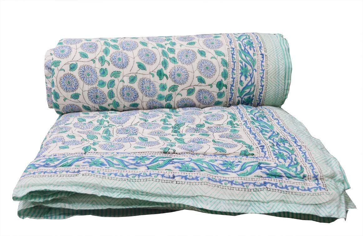 Beautiful Hand Block Print Reversible Winter Razai Quilt In Side Doctor Cotton Razai Quilt Blanket Is Made Of High Quality Construction FABRIC- COTTON SIZE- Double 90"x108" Inch) Rajai is the Rajasthani name of the Quilt or the Blanket. But Jaipuri Rajai is totally different from any other blanket or quilt or rajai you have seen. These quilts are fully handmade from printing of the cloth, filling of Cotton . The softness is one uniqueness of the Jaipuri Rajai another being light weight.