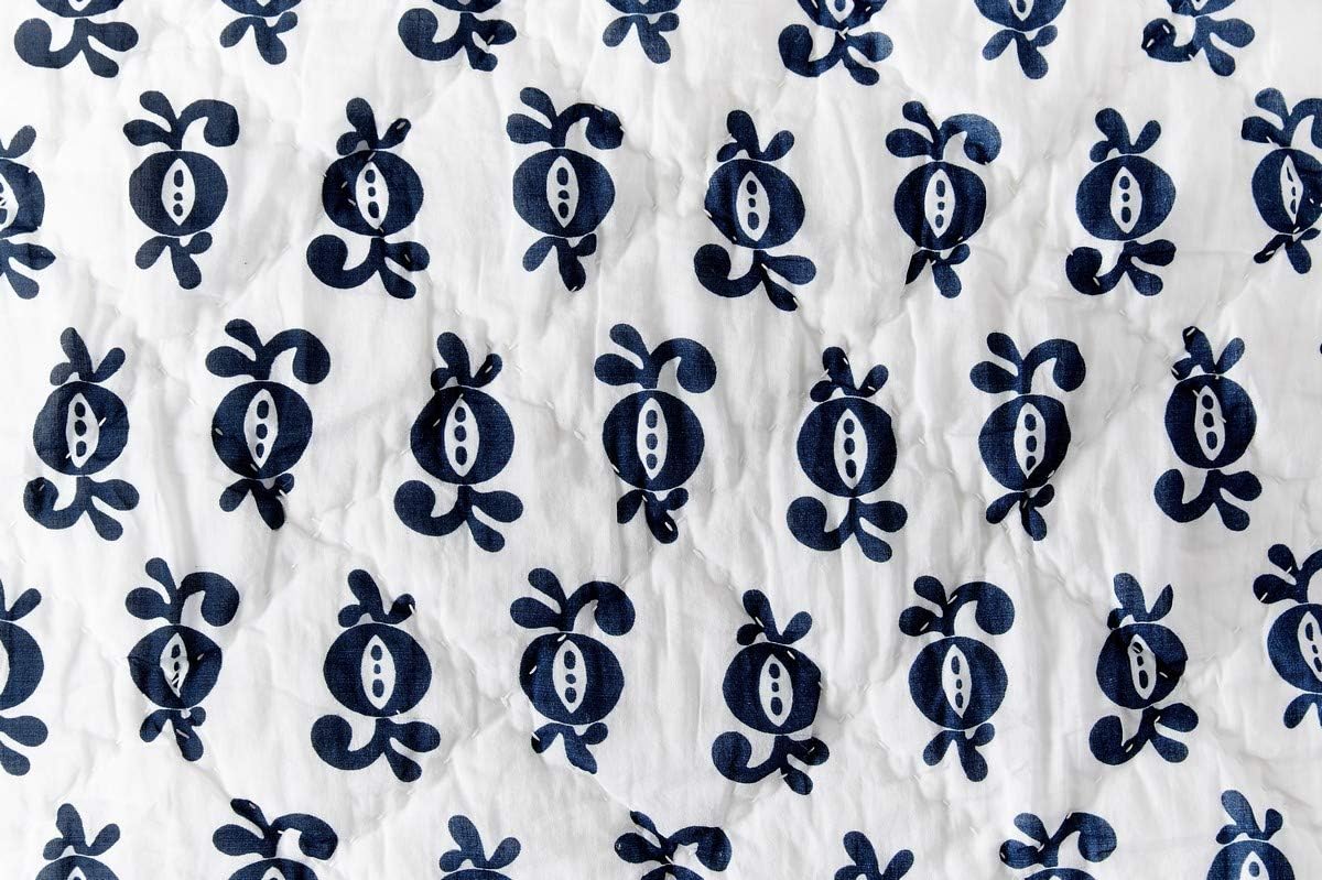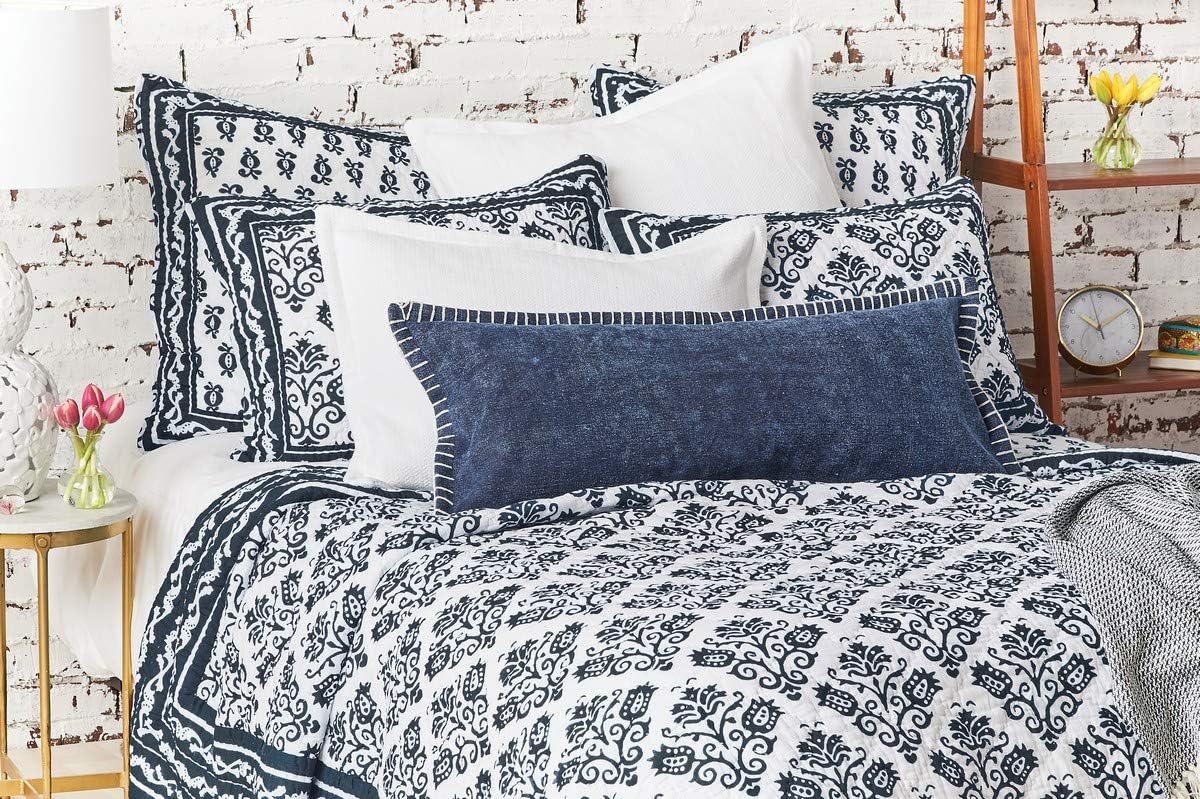 Classic meets modern to bring an air of worldly refinement to your bed. Designed in collaboration with WILLIAMSBURG, the Cassie bedding collection is inspired by 1800's wallpaper with a timeless style and Boho edge. A hand printed indigo-on-white tulip pattern graces the cotton voile ground of this quilt and a reversible hand blocked apple pattern gives you options. It's kind of like all those naps you took in history class, except way better.