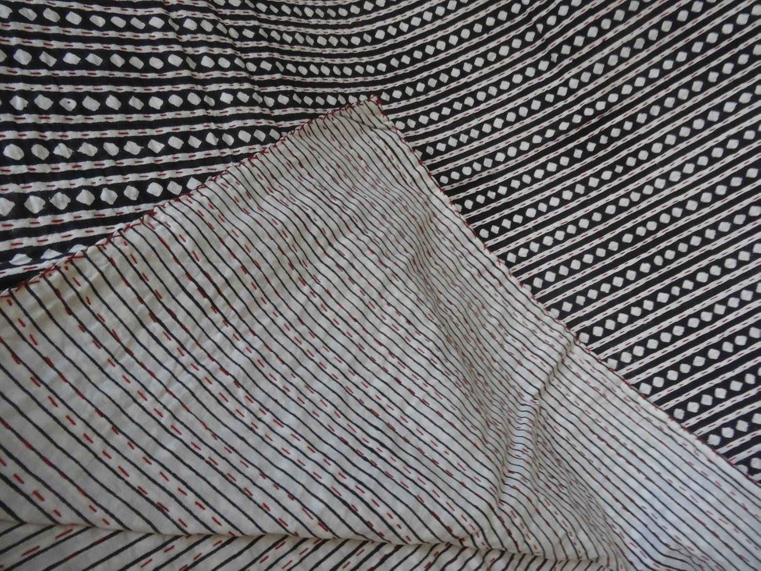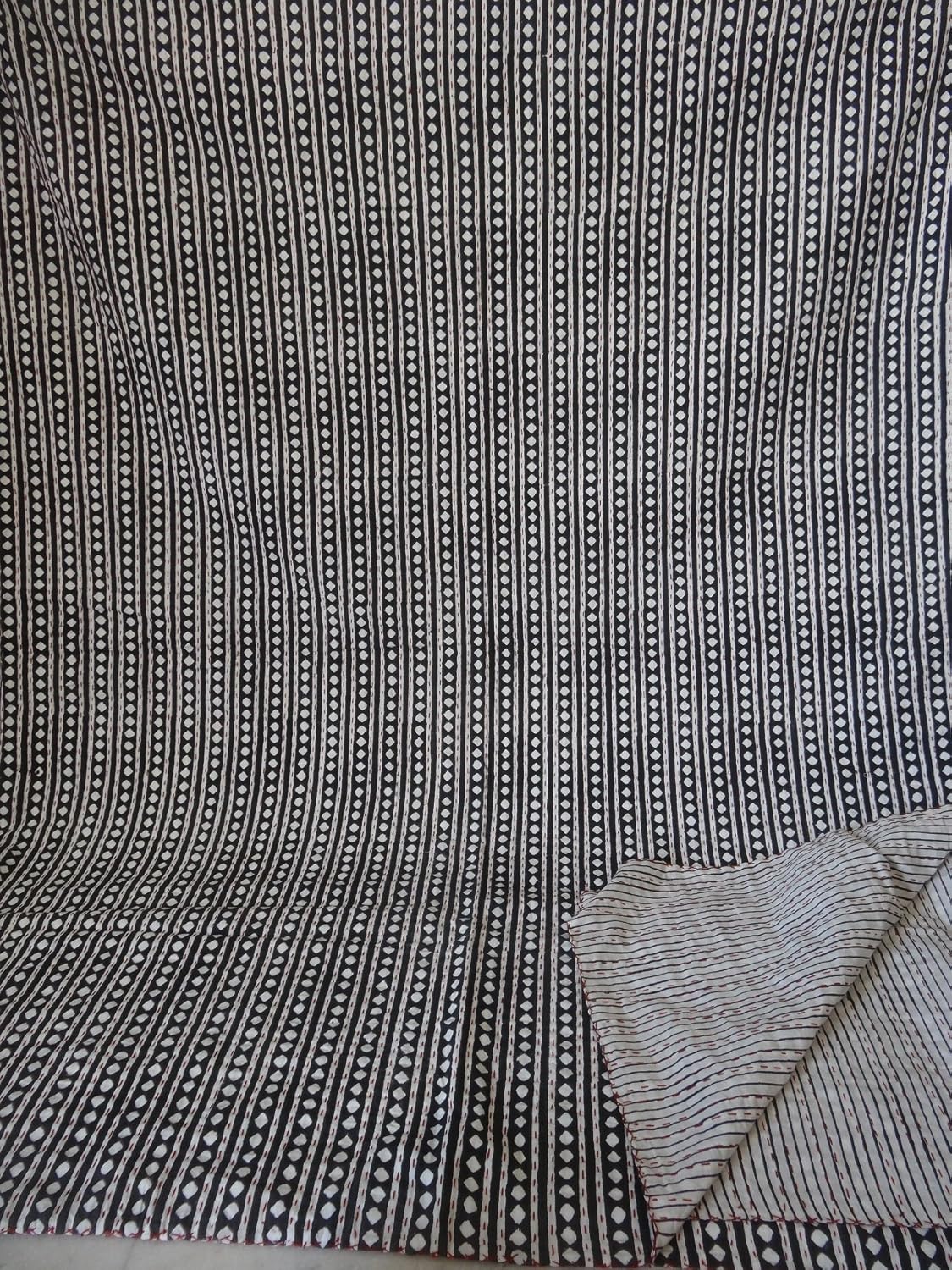 Indian Hand Block Print Handmade Kantha Quilt Reversible Bedcover Diamond Throw queen size 90 * 108 inches block print handmade kantha throw