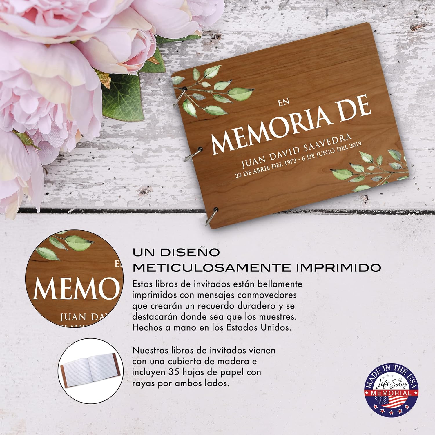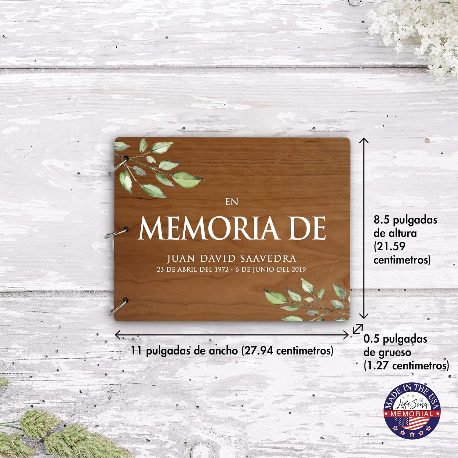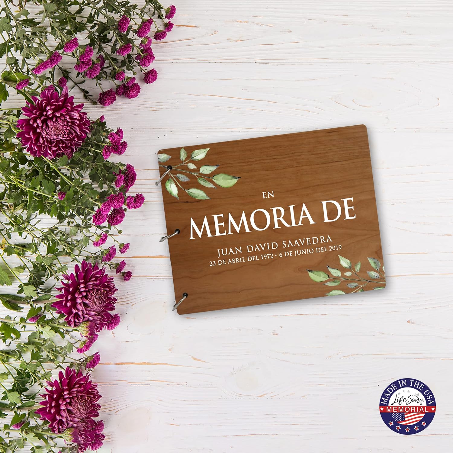 THESE TIMELESS Eye Catching keepsake to celebrate the life of a departed loved one can serve as a gift that will be cherished and loved forever. Made from top-quality re-engineered wood made in the USA. Unique and Handmade Guestbook will keep precious memories of your loved one. This Memorial Funeral Guest Book is enclosed in a wooden cover, MADE IN USA, made with love just for you. It is personalized with digitally printed verse to make it a forever keepsake. Handcrafted in the USA and designed exclusively by ️ 2020 LifeSong Milestones.