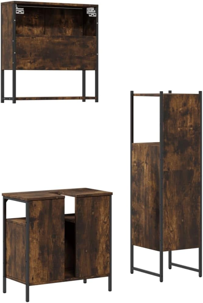 Modern Design: With its contemporary style, this bathroom set is more than just furniture; it’s a statement piece that adds a sleek vibe to your decor. The clean lines and fresh look blend well with existing fixtures, creating an inviting atmosphere. Whether you’re renovating or just sprucing up your space, this set is a top pick.Durable Materials: Made from engineered wood with a powder-coated steel frame, this bathroom set is built to handle the moisture found in bathrooms. The strong, reliable materials ensure it lasts while keeping its high-quality appearance even with regular use.Easy Installation: It’s designed for quick and simple assembly. All the mounting hardware is included, so you can get it on the wall without a hassle. The wall-mounted design not only clears floor space but also gives your bathroom a neat appearance. Transforming your bathroom has never been this easy with this lovely furniture set.Versatile Use: Perfect for anyone, from DIYers to busy families, this furniture set enhances bathroom organization. Use it for makeup and grooming or as extra cupboard space. Its adaptable design makes it great for various needs, ensuring it fits well in any home.Color: Brown Shape: RectangularMaterial: Engineered woodFinish: Smoked Indoor/Outdoor: Indoor OnlyNumber of Doors: 4Cover Included: NoRoom: BathroomHeadboard Included: NoMounting Included: All included to mountDimensions: 11.8 x 23.6 x 23.6 in (W x L x H)Swings: NoLadder: NoDelivery Contains: 1 x Bathroom mirror cabinetAssembly Required: YesRecommended Number of People for Assembly: 2