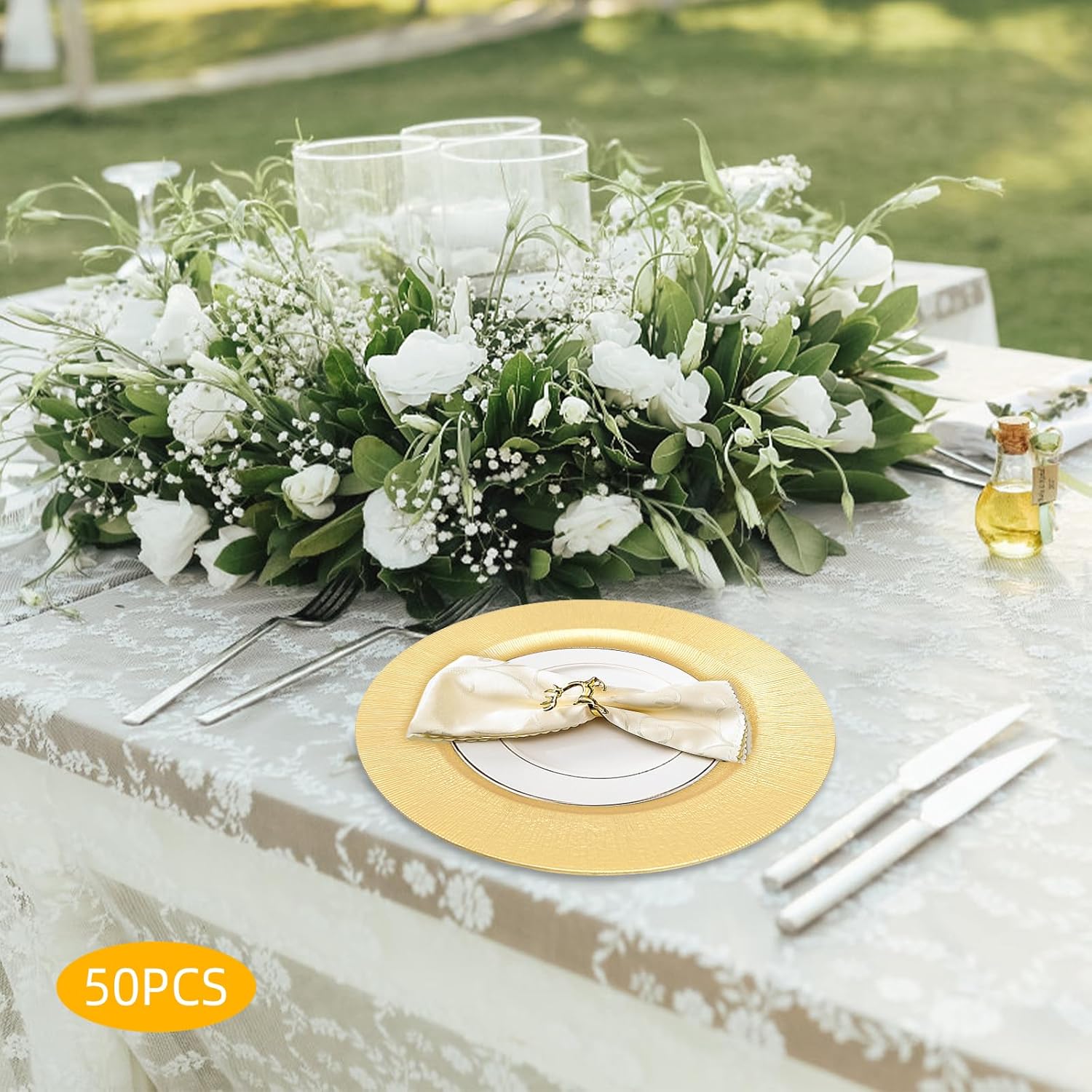 13 Inch Round Charger Plates Plastic Wedding Dinner Elegant Reusable for Table Setting Wedding Party Event Tabletop Setting Decor