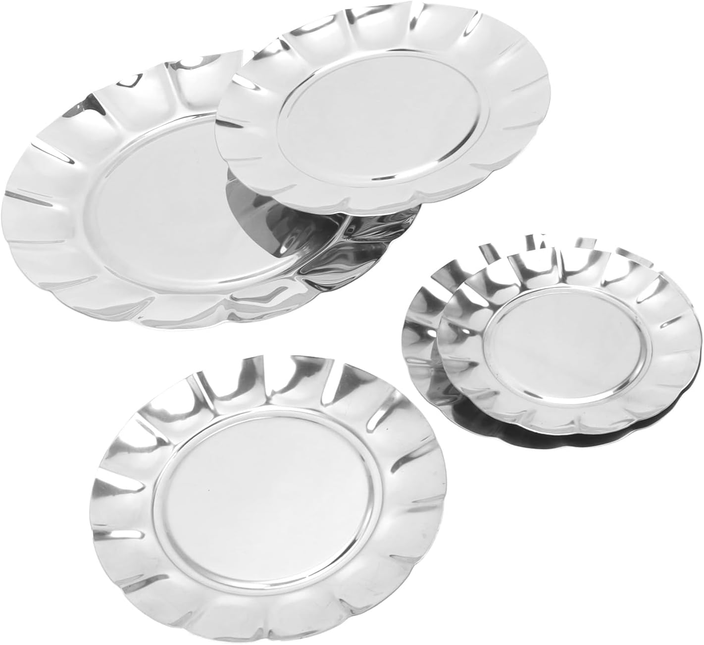 Item Type: Food Plate Weight: 986g / 34.78ozMaterial: Stainless SteelDiameter: 13cm / 5.12in, 15cm / 5.91in, 16.5cm / 6.50in, 20cm / 7.87in, 25cm / 9.84inPackage List:5 xFood Plate