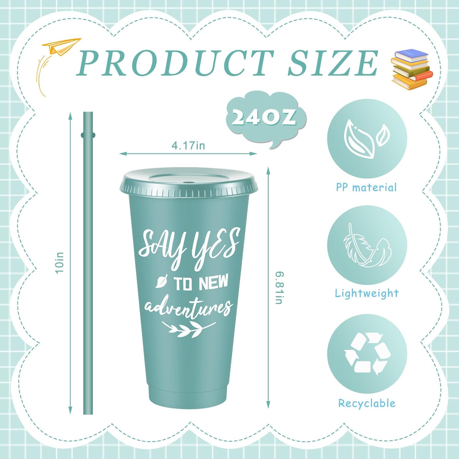 Features: Morandi color options: The reusable cups come in a variety of 10 morandi colors, namely pink, white, red, light blue, black, deep purple, purple, dark red, yellow and green, allowing you to choose the cups that resonate with your personal style or mood. Whether you like a bold and energetic color or a calming and soothing shade, there's a cup to suit your taste. Thoughtful gift option: The inspirational plastic tumblers make for a thoughtful and inspiring gift. Their motivational design and practicality make them an ideal present for birthdays, graduations, or other special occasions. Show your loved people that you care about their motivation with these tumblers. Specifications: Material: PP Color: as the picture shown Size: about 6.81 x 4.17 x 2.36 inches/ 17.3 x 10.6 x 6 cm Capacity: about 24 oz Package includes: 30 x Motivational plastic tumblers Notes: Manual measurement, please allow slight errors on size. The color may exist a slight difference due to different screen displays. Words printed on our products are only for decorating, not as trademarks, and our trademark is Uiifan.