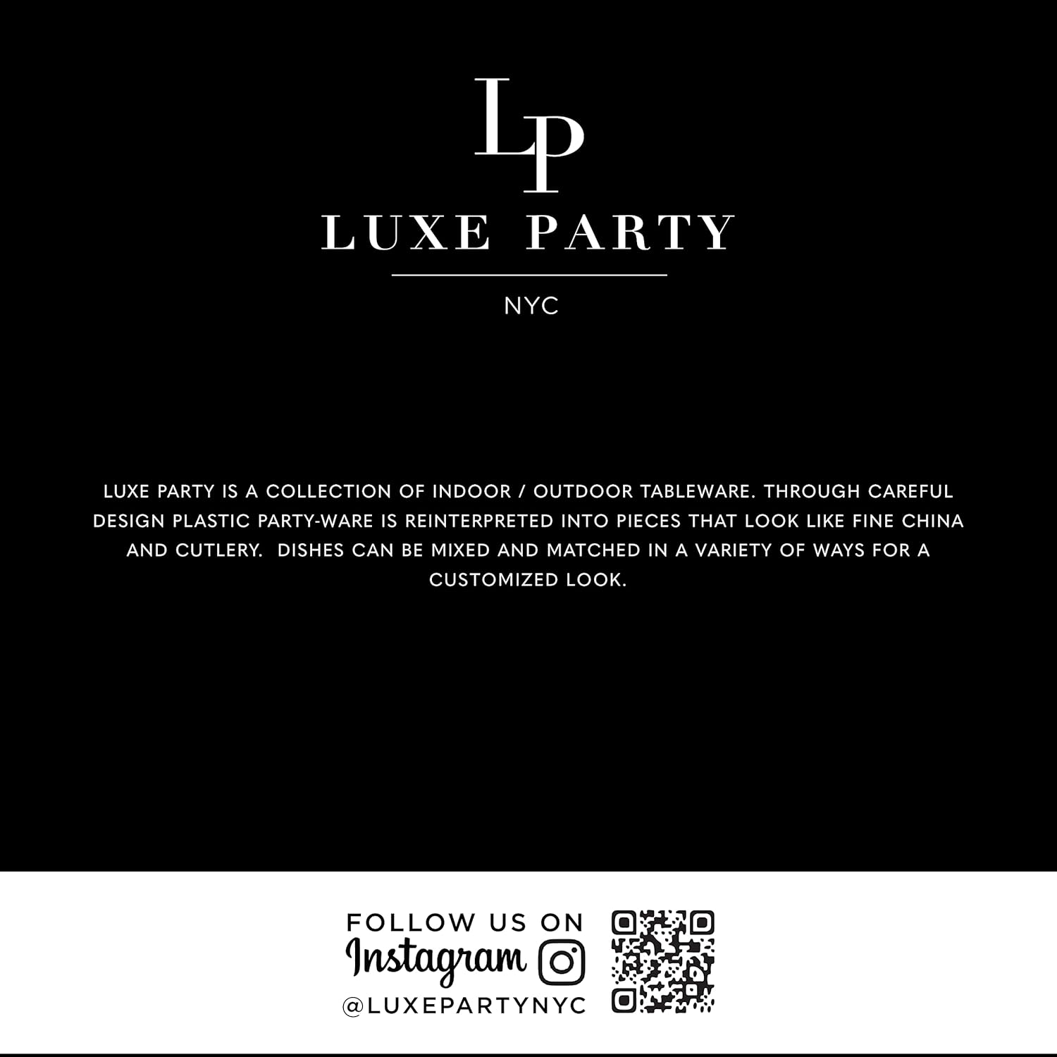 Our goal is that as a host one will have a sophisticated table space without the hassle of cleaning up and washing the dishes. We offer many colors and elegant designs of dinnerware, for one to choose from. Enjoy our plastic dinnerware that comes in round, square and flower shapes. Our printed plates offer real elegance. and a fun way to mix and match. Our colors are diverse and fashion forward. Our metallic plastic cutlery will add a new dimension to your table setting. Check out our classic, venetian and two-toned plastic cutlery sets. Our plastic tumblers have a bit of flair with metallic trim to add a bit of glamour. We offer them in a couple of different sizes. Whether you are hosting a wedding, bridal shower, our office party, our luxe party supplies will allow you to show off your hosting creativity