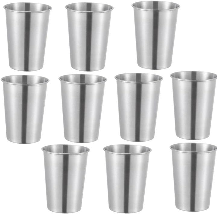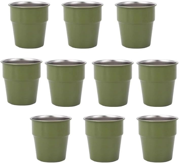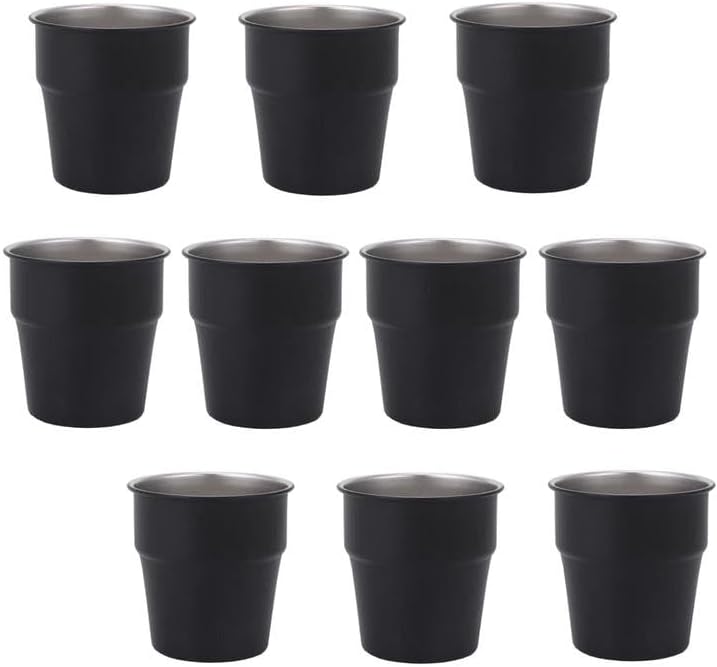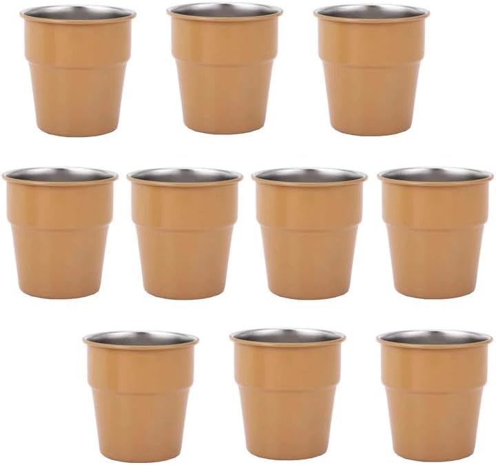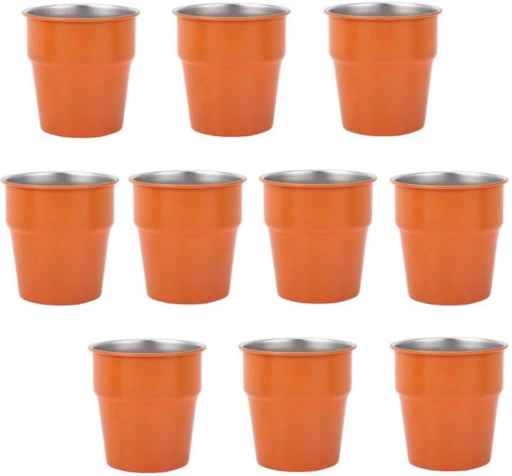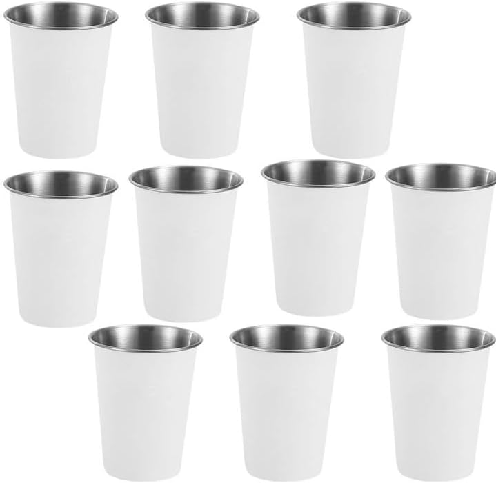 Specifications: Package includes: Pack of 10 Drinking cups Color: White as picture shown Material: High quality Food grade 304 Stainless steel Dimension(approx.): 8.2cm x 8.4cm / 3.2"*3.3". Capacity: 300ml Features: 10 pack Beverage drinking cups with a rolled rim. Made of 304 Food grade Stainless steel. Unbreakable and durable, rustproof. Dishwasher safe. Widely used tumblers as coffee cup, milk cup, espresso coffee cup, tea cup, cold drink cup, water cup, juice cup, beverage cup and more. Stainless steel drinking glasses, versatile colors available. Enhance the look and feel of your bar. Bring happiness of drinking iced drinks to the fullest! The stainless steel beer cups can be stacked up together and save your space, convenient for you to storage and carry around, easy stroage. Drinkware cups set is suitable for Home, restaurant, hotel, bar, club, party, camping, rv, home gathering, traveling and more occasions.