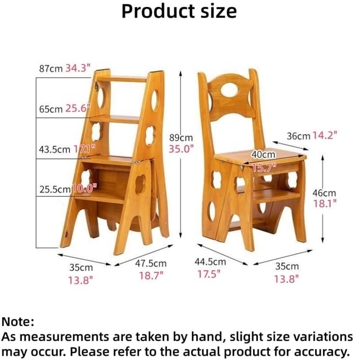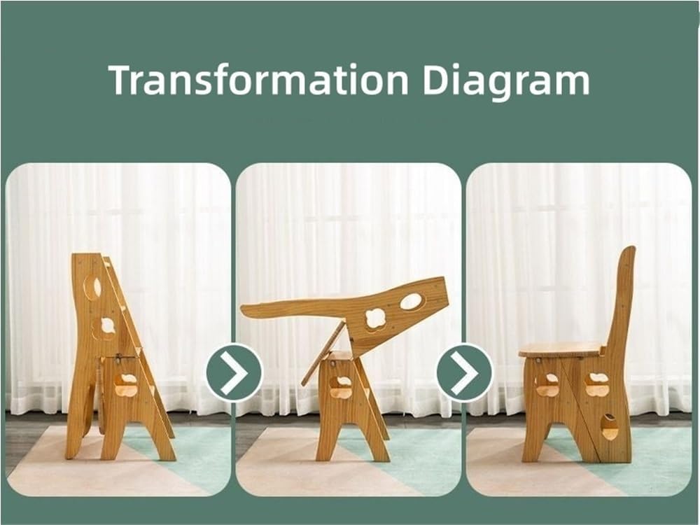 This heavy-duty 4 step ladder chair is designed to combine durability, reliability, and versatility in a practical household essential. Reinforced pedals are securely embedded into grooves and fastened with large hex screws, while mortise and tenon joints ensure long-lasting structural integrity. Wide metal hinges and metal latches further enhance stability and help reduce movement during use.Well suited for kitchens, homes, offices, libraries, garages, sheds, and more, this folding wooden step ladder chair offers a smart, space-efficient solution for reaching, sitting, organizing, and displaying items with confidence.