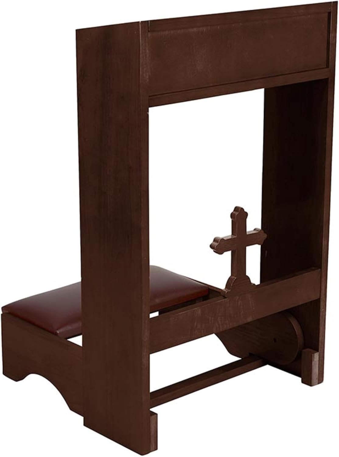 The Walnut Wooden Cross Kneeler is an ideal addition for churches or personal devotional spaces, designed to offer comfort and convenience during prayer. Crafted from sturdy wood with a rich walnut stain, this folding kneeler features flame-resistant padding and a practical shelf for storing a Bible or Missal. The padded kneeler folds up easily for compact storage, making it a versatile and functional piece for any prayer area. With no assembly required, it’s ready to use right out of the box.