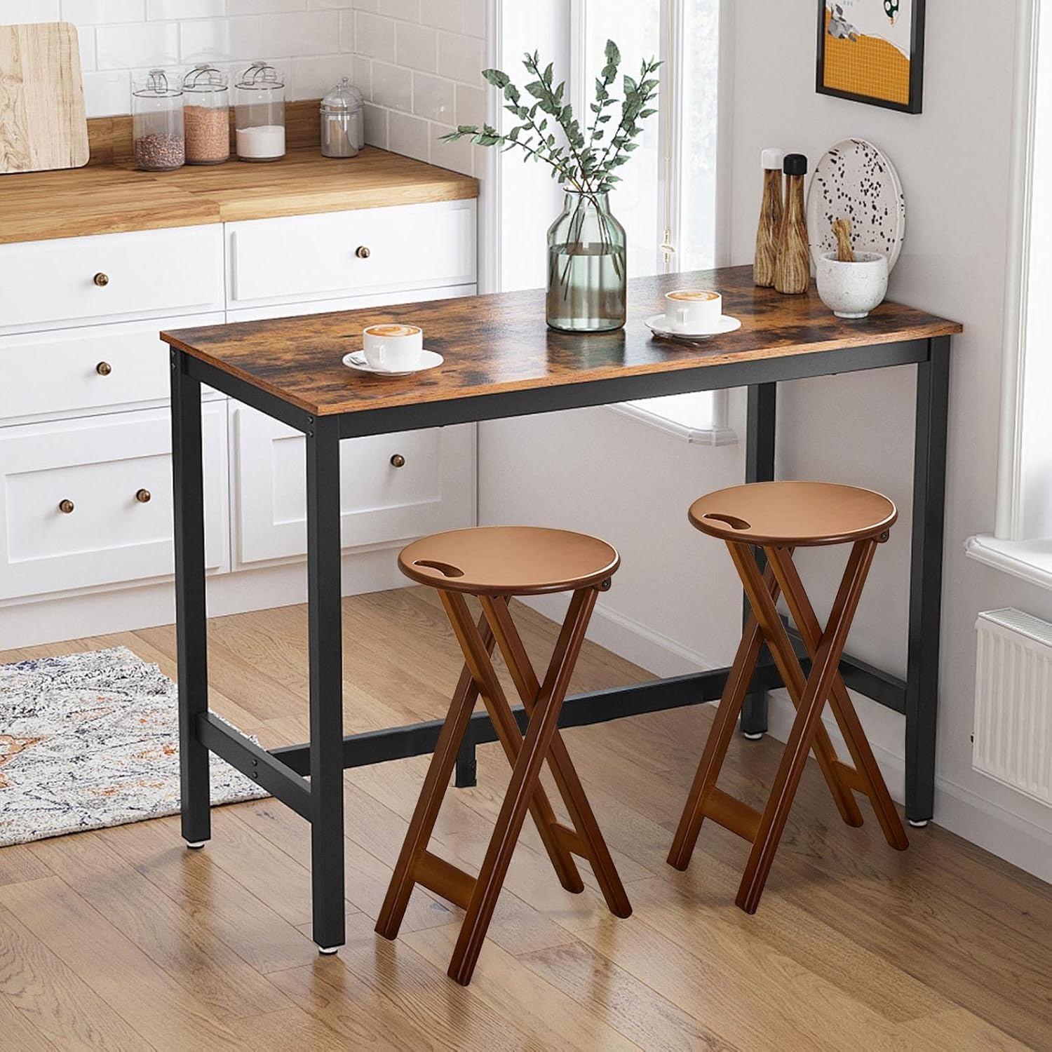 This counter height bar stool is made of high quality material, carefully polished every detail, pursuing both fashionable aesthetics and practicality. The sturdy base and thickened support bar ensure stability and safety in use. This barstool is not only a piece of furniture, but also a reflection of lifestyle. It fits perfectly in both domestic and commercial setting, bringing both comfort and aesthetics.Specification:Product Name: Counter height stoolsMaterial: BambooColor: Tea colorProduct size: Small: 12×8.5×17in; Large: 13.4×8.9×23.6inFolded height: Small: 25.8in; Large: 33.7inStool surface diameter: 12.6inLoad-capacity: About 200lbsAssembly required: NoGross weight: Small: 5.7lbs; Large: 7lbsPackage Content:Kitchen bar stools × 1Warm Tip:If you have any problem after receiving the product, you can contact us at any time, we will provide you with a satisfactory solution within 24 hours.