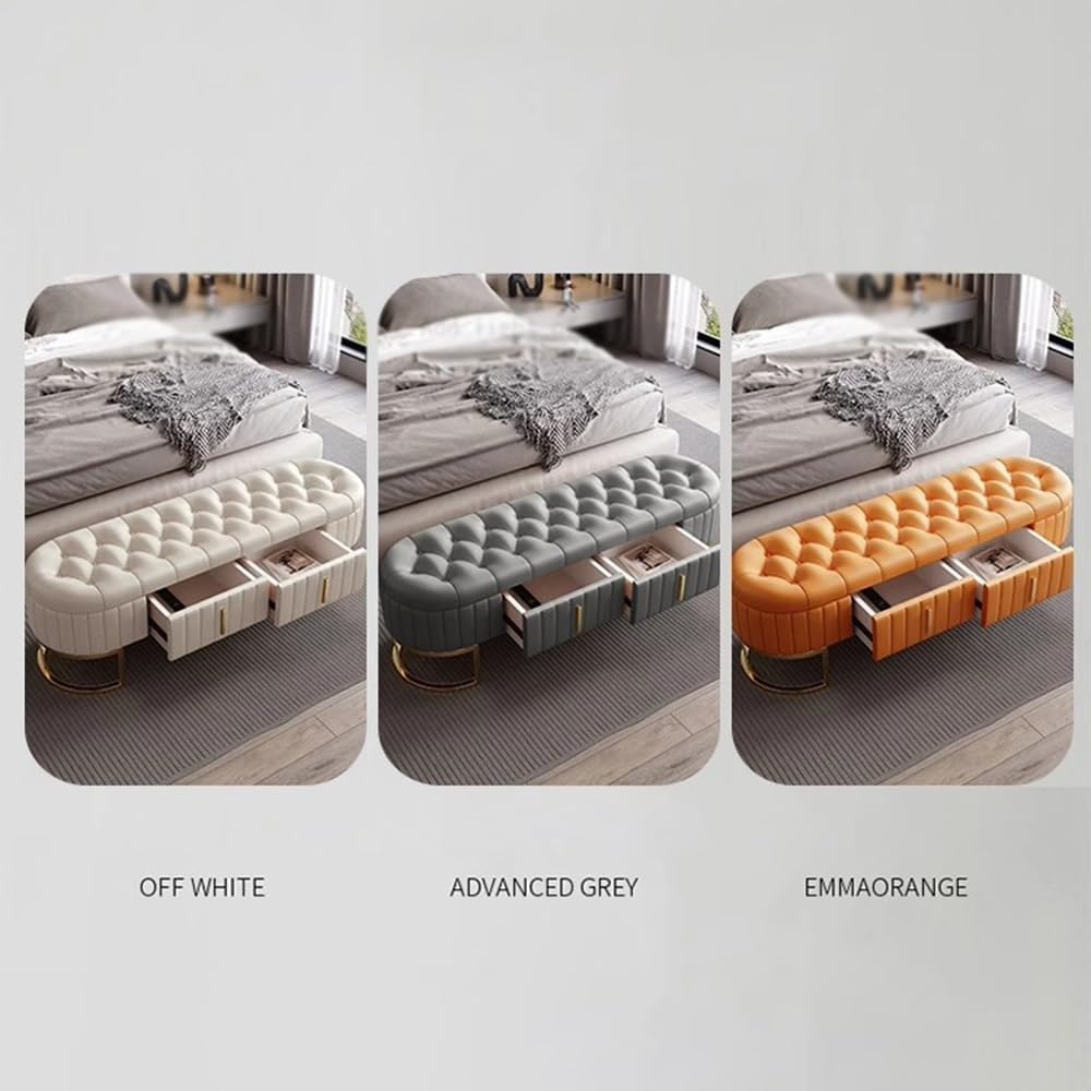 Easy to Assemble: You can easily complete the assembly of the bedroom bench in less than 5-10 minutes, without other additional auxiliary tools.Name: Bed End Stool Bedside StoolMaterial: Leather + Metal + Filling SpongeColor: Beige , Gray , OrangePacking List: 1* Bed End Stool