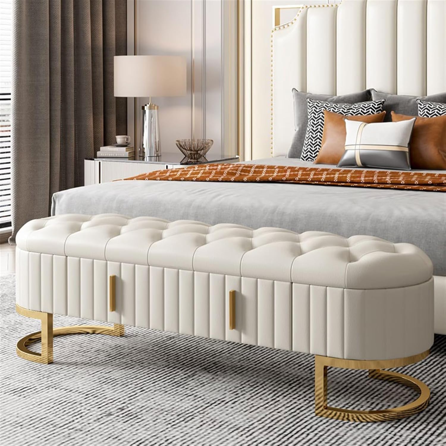 Easy to Assemble: You can easily complete the assembly of the bedroom bench in less than 5-10 minutes, without other additional auxiliary tools.Bedroom End of Bed Bench,Entrance Bench,Dining Room BenchProduct Name:End of Bed BenchMaterial: PU leather + high-density resilience sponge + metalSize: 130*40*50cm, 150*40*50cm, 180*40*50cmPacking list: 1*end of bed benchNotes:1.Please confirm the size and color before purchase.2.This product has no other items except the bed end stool in the photo.