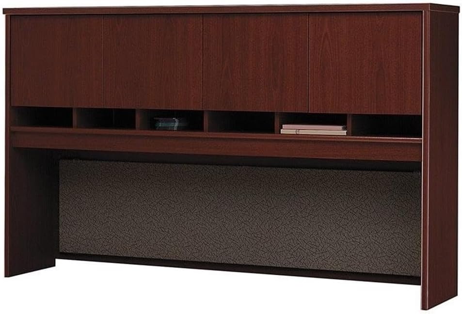 Create a complete workstation by adding the 72"W hutch to your 72"W desk or credenza shell. Featuring four covered storage compartments, and six work-in-progress cubbies, this hutch adds expansive storage to your office. With a fully finished back panel, the hutch provides for versatility in placement. A fabric covered tack board creates additional organizational space to keep notes, calendars and pictures in view.Features:Finish: MahoganyHutch includes fully finished back panel and fabric covered tack boardMonitor clearance is 20.79" highAccepts two task lightsFeatures self-closing euro-style hingesMeets ANSI / BIFMA standards for safety and performance in place at time of manufactureCommercial quality backed by 10-year warrantyManufactured in the U.S.A. with U.S.A. & imported parts and GSA approvedLevel 1 certified to the ANSI / BIFMA e3 furniture standard for environmental sustainability