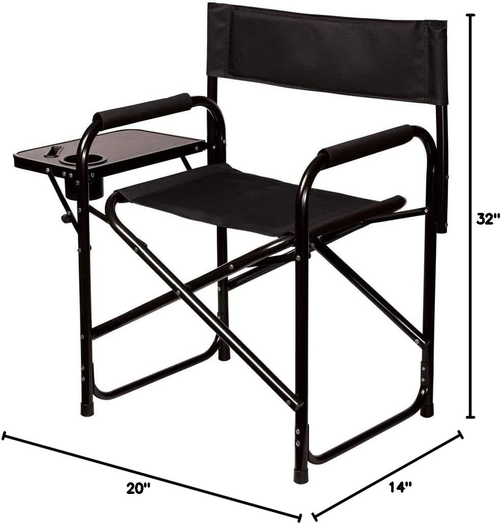 Dura-Tech Folding Directors Chair with Table | Color Black | Comfortable & Durable | 250 lbs Weight Capacity | Folding Side Table with Cup Holder | Easy to Carry | Ideal for Horse Shows