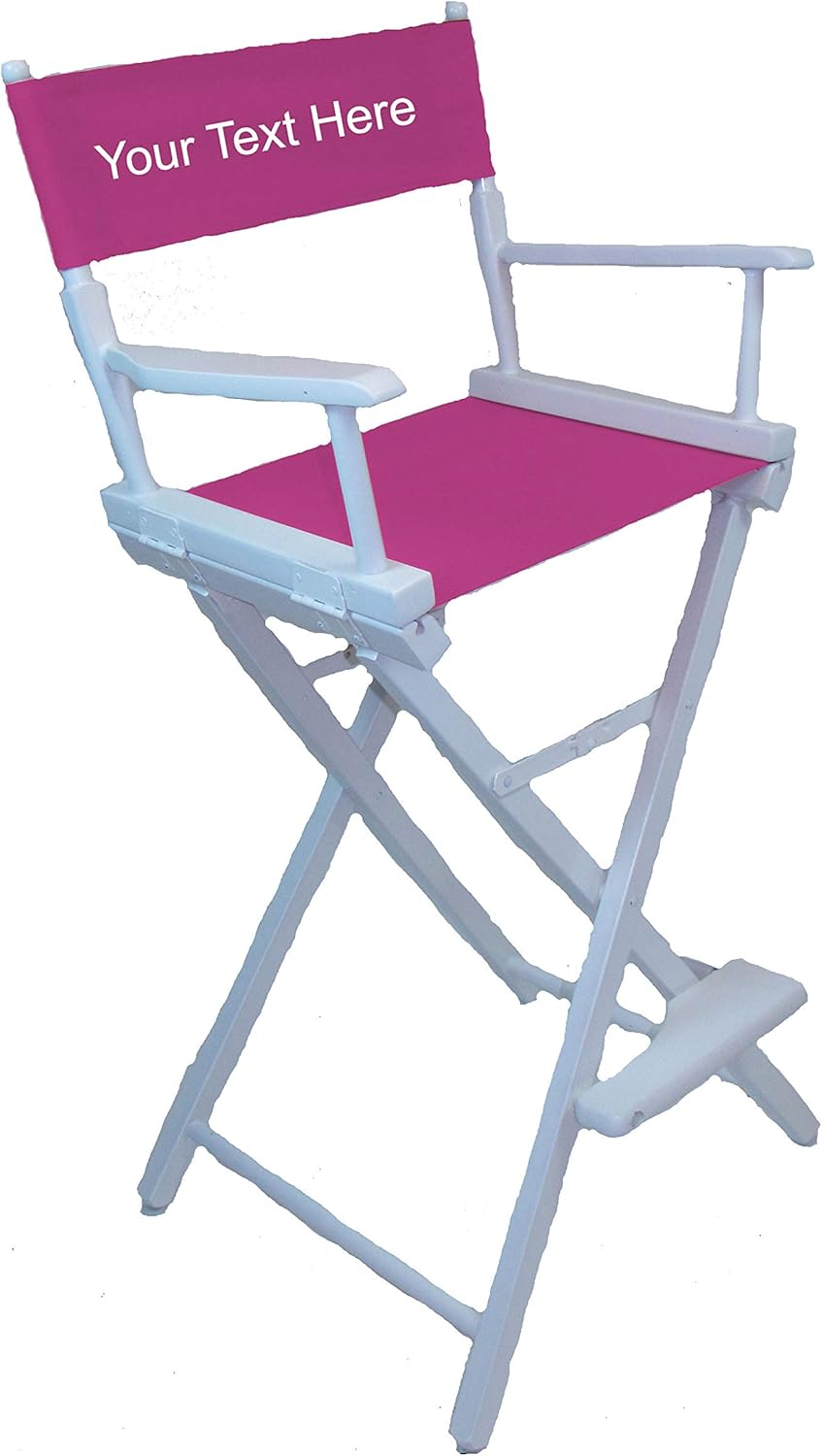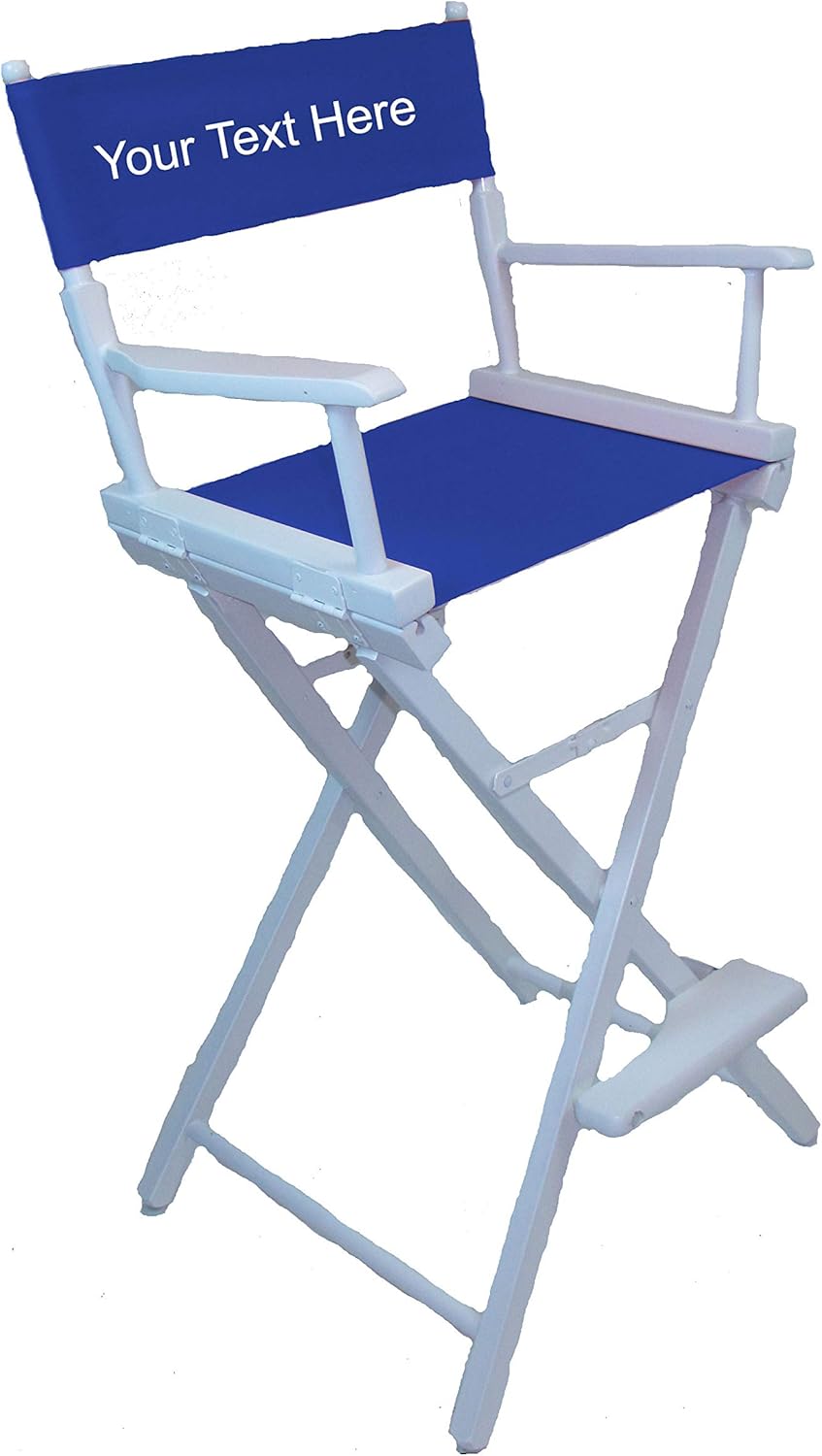 Customization Instructions - Simply click Customize Now to begin personalizing your new chair! Once the customizer window opens, choose INCLUDED Line of Text and fill out all of the information to personalize your chair. We also offer an Extra Line of text for an additional fee. To receive that line of text, click EXTRA LINE of Text after filling out the information for the included line. To receive your extra line of text, you must choose Yes to the question Would you like an EXTRA line of text? so that you will be charged correctly. If you choose No, the extra line of text information will be ignored. Your extra line of text can be centered underneath the included line of text or on the opposite side of the back piece. Type in your inscription exactly as you want it on the chair, we will personalize it with the options you chose and exactly as it is typed. Happy personalizing! Imprinting Process Description - The heat imprint process is just like sign making - letters are computer cad cut from vinyl and then applied to the fabric under high heat and pressure, fusing the vinyl into the fabric permanently. The result looks almost identical to silk screening and is just as durable and professional looking. Chair Description - The Commercial Directors Chair offers value and quality that you expect to find in a chair made in the USA from locally managed Appalachian beech hardwoods. The Commercial director's chair includes nylon foot floor protectors and metal seat braces for extra strength. This bar height director's chair sits 30" from the ground and features a folding footrest that does not need to be removed when the chair is folded up. All joints are hand fitted and glued with steel underpinning to insure tight and lasting rigidity. Strong joints are the most important factor in long lived director's chairs. The seat and back fabric are made from heavy duty 15 oz. cotton canvas which is washable and colorfast.