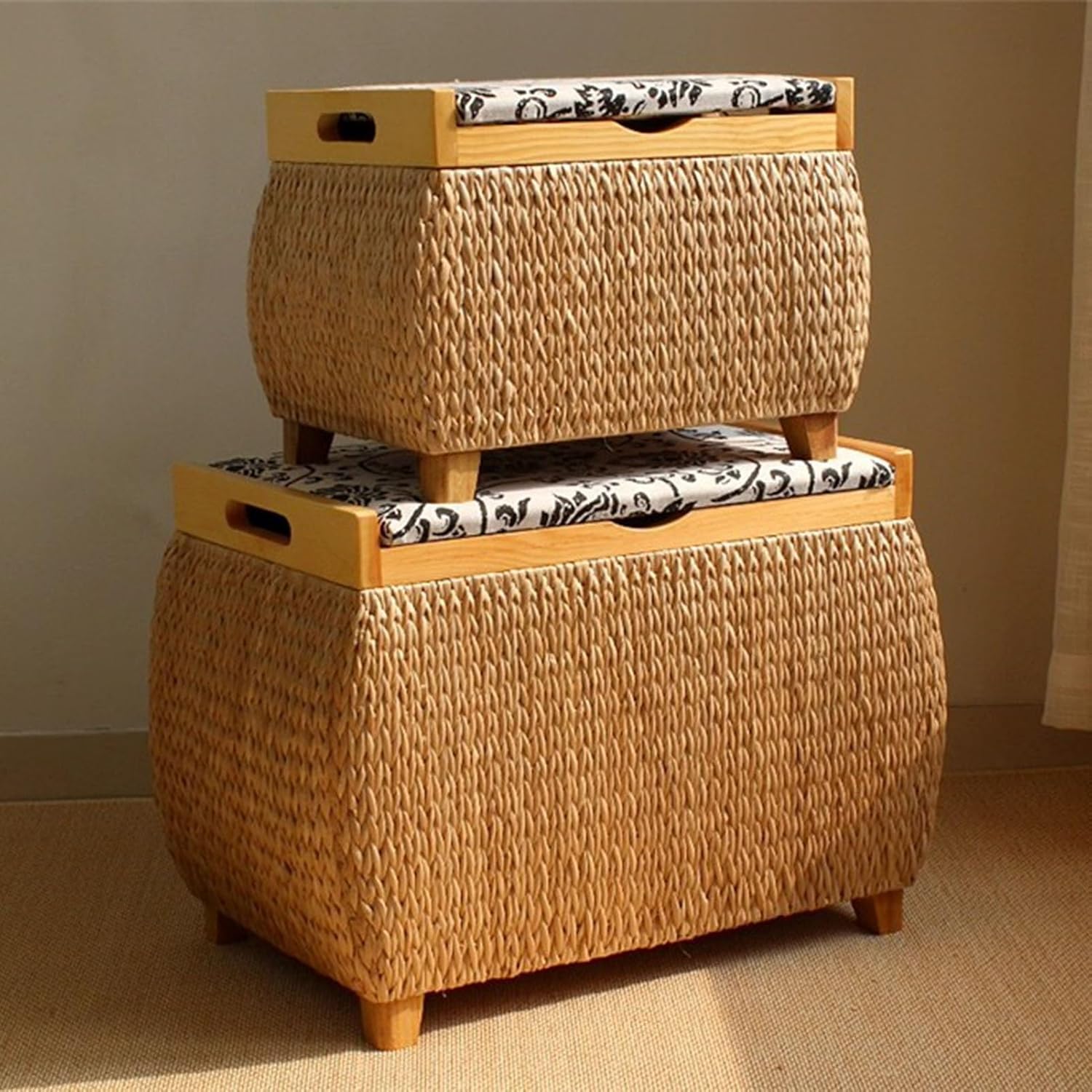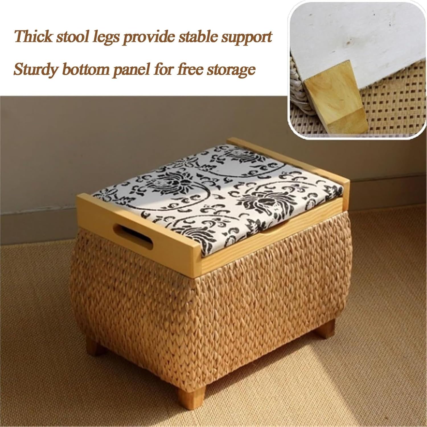 Our rattan footstool has good breathability, When the feet are placed on the rattan foot pedal, air can circulate through the gaps of the rattan, without making the feet feel stuffy, It is particularly suitable for use in hot seasons, In addition, the surface of the vine is relatively soft, providing comfortable support for the feet and relieving foot fatigueProduct Specifications :Name: Ottoman/Footstool/Footrest/Pouf/Low Stool/Sofa stool/Make-up stoolColor: Primary color , Primary color1Material: Solid wood frame, Narcissus grass weavingSize:Small:40X30X32CM/15.7X11.8X12.6INLarge:53X36X43CM/20.9X14.2X16.9INLoad capacity: 150KG (330lb)Whether to install: NoPacking list: Foot Stool * 1VERSATILE USAGE: rattan ottoman for a variety of settings, including meditation, yoga, tea ceremonies, floor-to-ceiling windows, tatami rooms, balconies, bay windows, living rooms, and bedrooms, It's for enjoying with family, friends, and guests, making every gathering more comfortable and memorableNote :1.We only sell ottomans, the others are props2.Due to the use of different shooting tools, slight color errors may occur3.Due to manual measurement, the error is 1-3cm(0.39-1.18in)