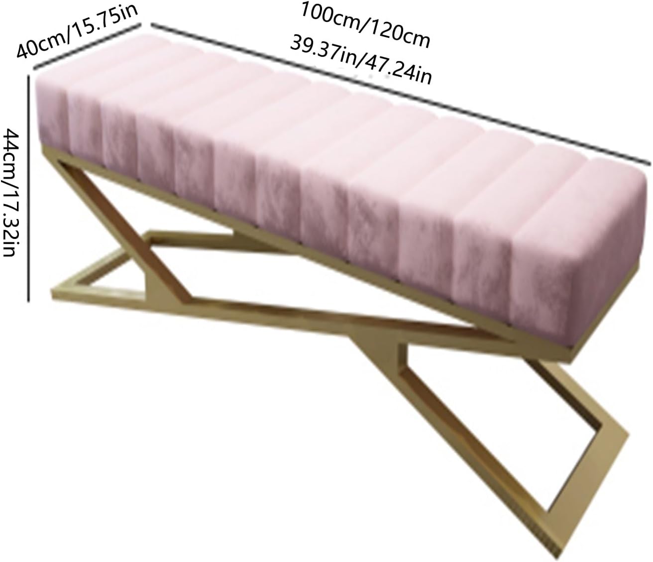 Product Name: End of Bed BenchProduct Dimensions:Length39.37*Width15.75inches*Height17.32inchesLength47.24*Width15.75inches*Height17.32inchesColor:Pink , Gray , White , GreenMaterial: MetalsPackage Included:1 * End of Bed BenchNotice:1.Please confirm the size and color of the product before parchase.2. Product photos do not include products other than products.3.Due to manual measurement, there may be a measurement error of 1-3cm in size.It can fit into any room: bedroom, living room, dining room, entryway, also blends with a variety of decor