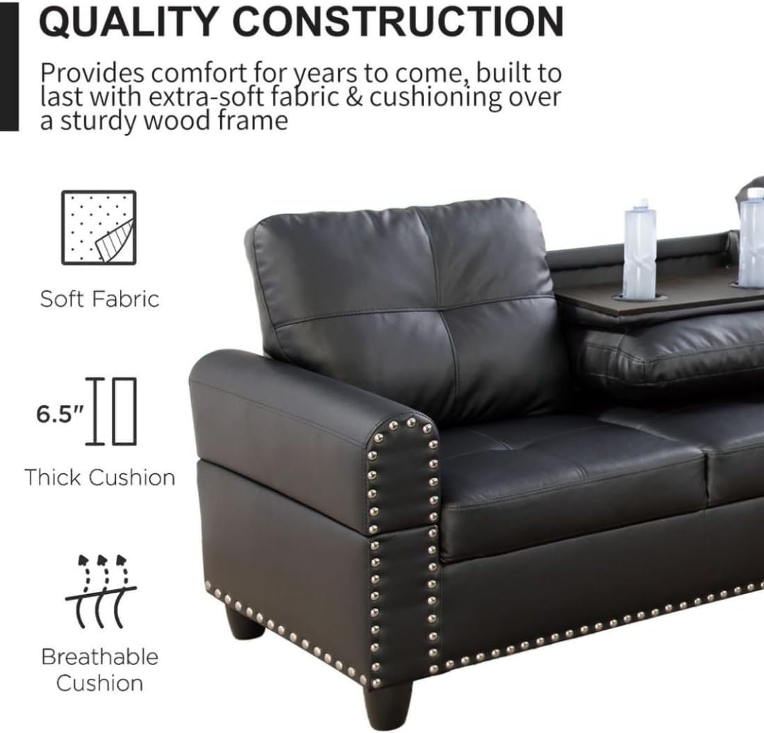 | Item Type Name | Sectional Couch Set for Living Room, Office, Apartment, with Cup Holder, Black |