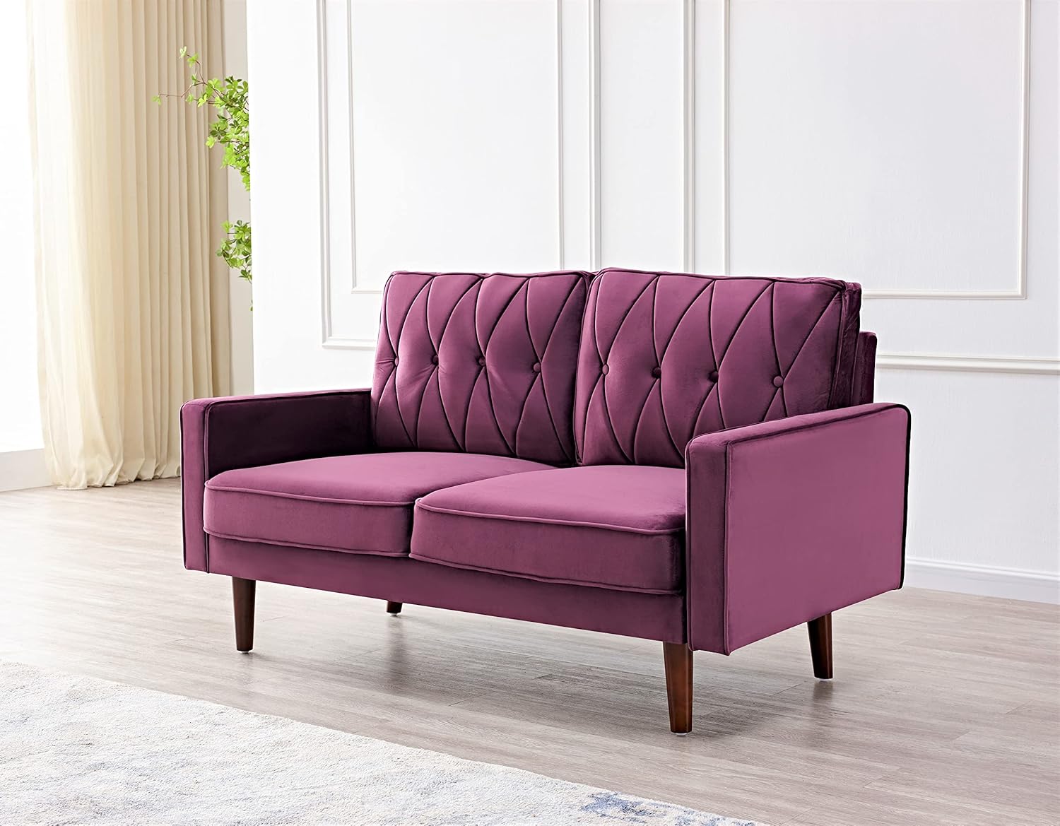 Our luxurious velvet couches for living room set strike the perfect balance between comfort and style. Our purple living room set is the ultimate way to anchor your space in modern style, with a streamlined silhouette, comfortable tufted back cushions, and round tapered legs in a beautiful pecan finish. Made with a solid and manufactured wood frame, our sofa and loveseat sets are built to last. One of the best things about our couch sets for living room is their versatility. With its compact size, stylish design and wide range of color options, it can be placed in any room of your home, from the living room to the bedroom or home office. Whether you're gathering the family around for movie night or just kicking back solo as you sip your morning coffee, our plush sofas for living room make the perfect perch. MEASUREMENTS: Loveseat - 31.5"D x 57.5"W x 33.5"H Weight - 55.6 lbs. Sofa - 31.5"D x 69.3"W x 33.5"H Weight - 63.5 lbs. With Container Furniture Direct, every product is guaranteed crafted with passion and pride to bring you only the finest in home furnishings. Upgrade your home with our sofa set for living room today!
