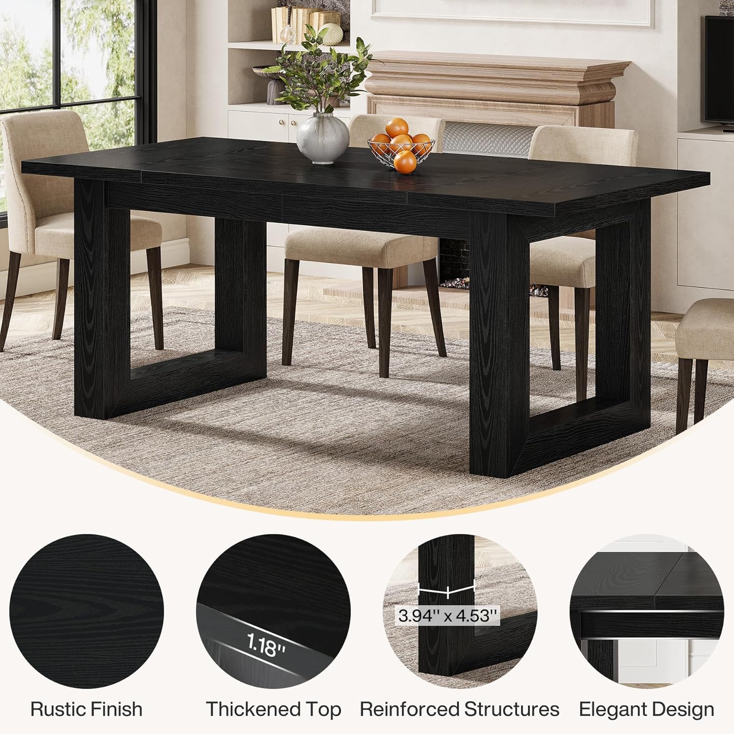 Tribesigns 63-Inch Dining Table, Modern Wood Kitchen Table, Large Rectangular Dinner Furniture for Dining Room (Black)