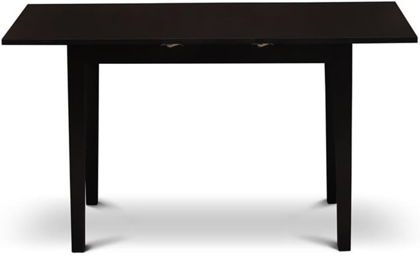 EAST WEST FURNITURE - NFT-BLK-T - RECTANGULAR DINNER TABLEThis exquisite wooden dining table adds a warm touch to any kitchen or traditional dining space, fostering a sense of closeness among family members. Its contemporary design enhances the elegance of your dining area, featuring fresh black legs for a stylish yet simple look. Enjoy meals with your family on this elegant, small rectangular table. The listing offers a premium black color finish for the tabletop, delivering a fantastic look to your dinner table or kitchen. Crafted from high-grade Asian rubber wood, this exceptional kitchen table features a butterfly leaf design for added versatility. Renowned for its superior stability and durability, rubber wood ensures long-lasting resilience, making it ideal for daily use. Our rectangular modern dining table is an excellent complement to your home, providing your guests with the best seat in the house. Although assembly is required, we provide a step-by-step guidebook for swift installation, taking just 30 minutes to complete.PRODUCT FEATURES:Mid Century kitchen table Top Color: Black ColorDining room table legs Color: Black ColorSmall modern dining table Measurement: Length: 53.5/42; Width: 31.5; Height: 29.Package Include: A Wonderful Small Dining Table.