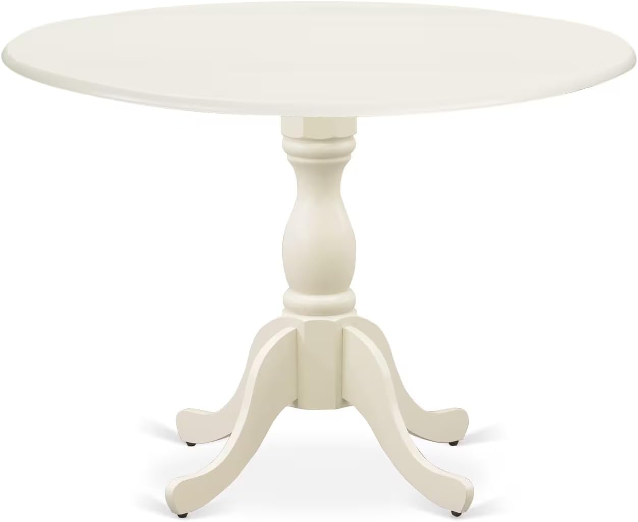 EAST WEST FURNITURE - DMT-ABC-TP - WOOD DINING TABLEThe kitchen dining table set brings a touch of modern elegance to your dining area with our stunning Pedestal wooden table. Crafted from high-quality Asian wood, also known as rubberwood, this innovative Round table boasts excellent stability and durability. The top surface of the wood dining table features a top-quality Wire Brushed Butter Cream mid-century wood finish, adding an impressive visual appeal. This small dining table is supported by Asian wood pedestal curved legs that are finished with a Wire Brushed Butter Cream, further accentuating the cutting-edge style of the dining table, which enhances the beauty of any dining room. The heavy-duty wood structure and modern round design of this wood dining table provide excellent durability and modernized appeal to your kitchen room. Due to its compact size, this dining table is easy to move, clean, assemble, and place. The exquisite style of this exclusive mid-century table complements any room decor perfectly. This pedestal table is sturdy and durable, making it an excellent choice for an outstanding dining experience with your family or friends. Keep enjoying the sophistication and quality of East West furniture.PRODUCT FEATURES:Table Top Finish: Wire Brushed Butter CreamModern Dining Table Legs: Wire Brushed Butter CreamTable Material: Asian WoodDining Table Dimension: Length: 42; Width: 42; Height: 29.5.Included in the Package: Beautiful Round Wood Dining Table.