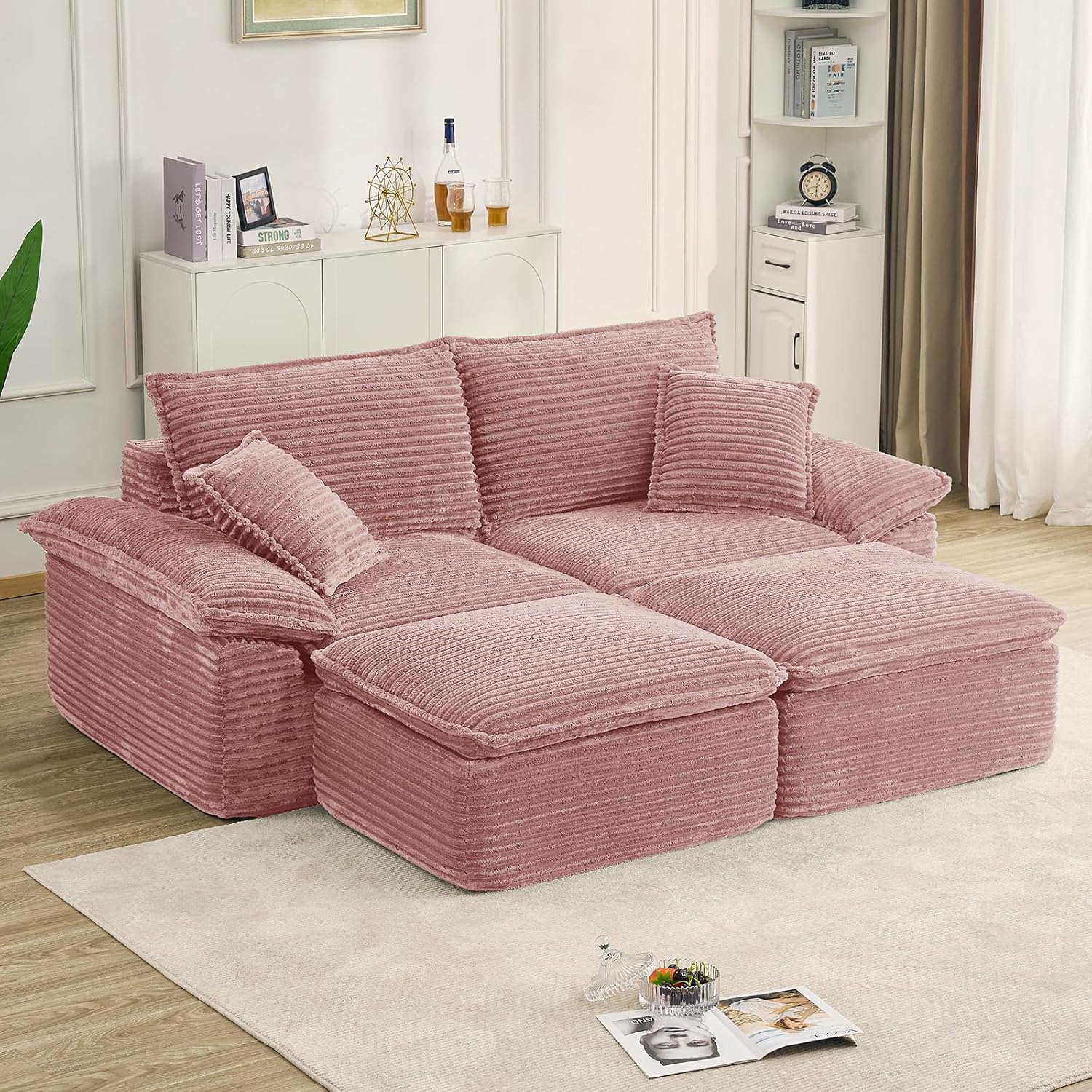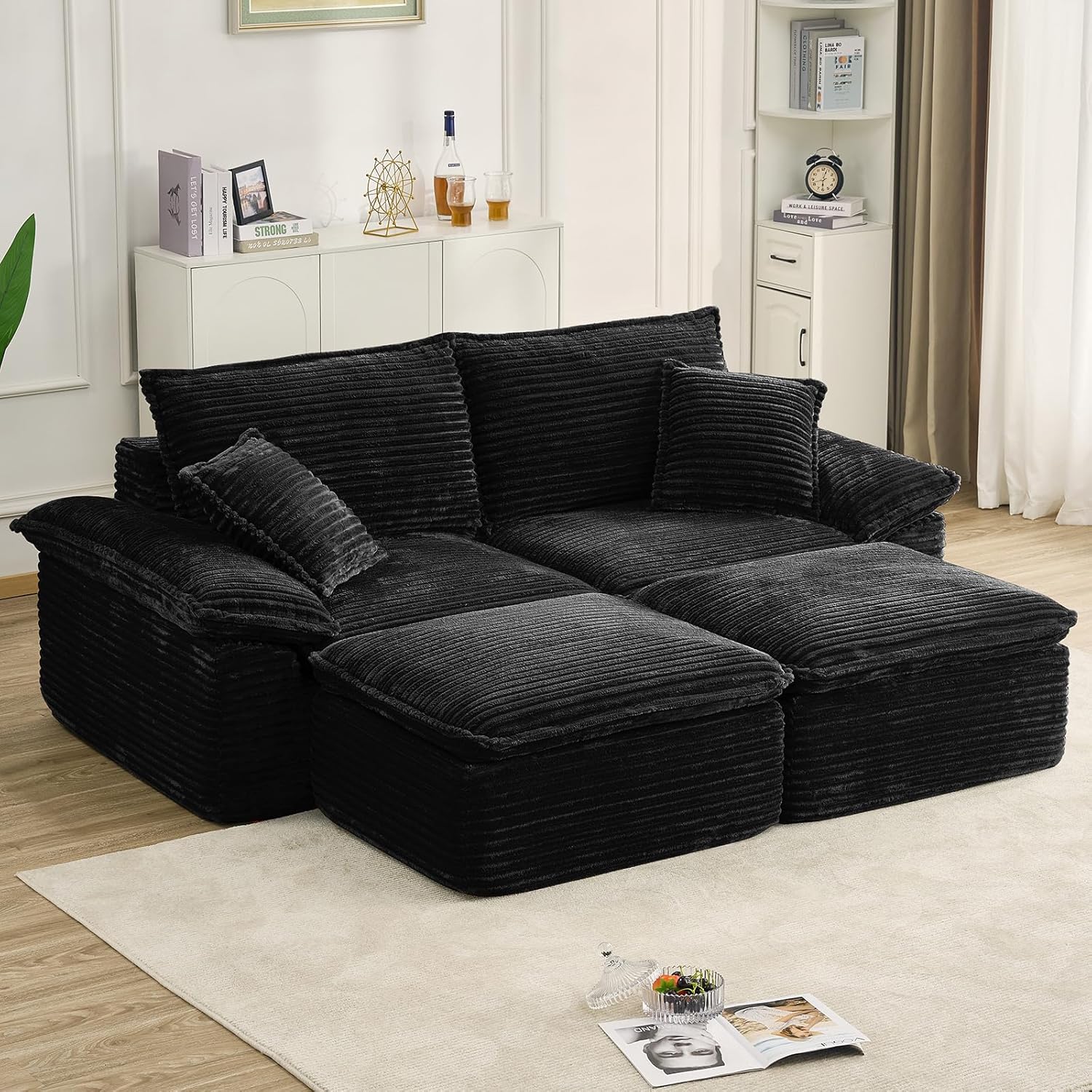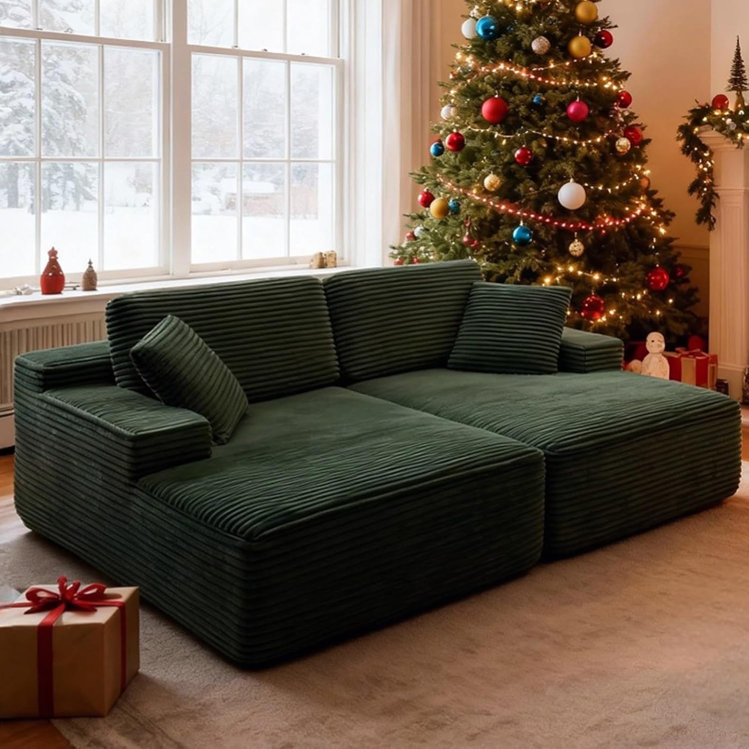 Anwick 90"Double Chaise Lounge Chair,Deep Seat Boneless Sleeper Love seat,Modern Cloud Sectional Sofa Reading Chairs for Living Room Bedroom.. Integrates oversized,cloud-like comfort,multiscene adaptation and convenient experience,making every break a wonderful moment of physical and mental relaxation We are dedicated to bringing you creative living room sofa furniture ๐ Boneless Couch Sensation:this sofa bed mimics the feel of a luxurious chair molding to your body for unparalleled,personalized comfort that cradles you in softness ๐ 51"Width Adult Chaise Lounge:stretch out and sink in,offer ample space to curl up,lie down,or lounge with your legs crossed,making it the perfect solo escape pod ๐ Plush Corduroy Fabric:soft and supple to the touchgentle on skin,and easy to care for stains can be wiped clean with a damp cloth ๐ All-Day Reading & Lounging chair:the ergonomic back and armrests provide perfect support for your neck and back,making movie marathons blissfully comfortable without any strain ๐ Convenient Sleeper Bed Alternative:Need an impromptu spot for a guest? this deep seat easily doubles as a cozy couch bed for a quick nap or an overnight stay,offering exceptional versatility ๐ Complete with Support Pillows:each sofa chairs comes included with plush pillows,offering extra lumbar and head support right out of the box ๐ Friendly technical support:simply unbox it,place it in your favorite spot Overall Sofa:68.5"ร50.7"ร26.1" Arm Height:23" Packing Quantity:1 Interior Material:Corduroy Interior Color:Beige/black/green/orange Backfill Material:Foam Pillow Included:Yes Carrying Capacity:700 lbs