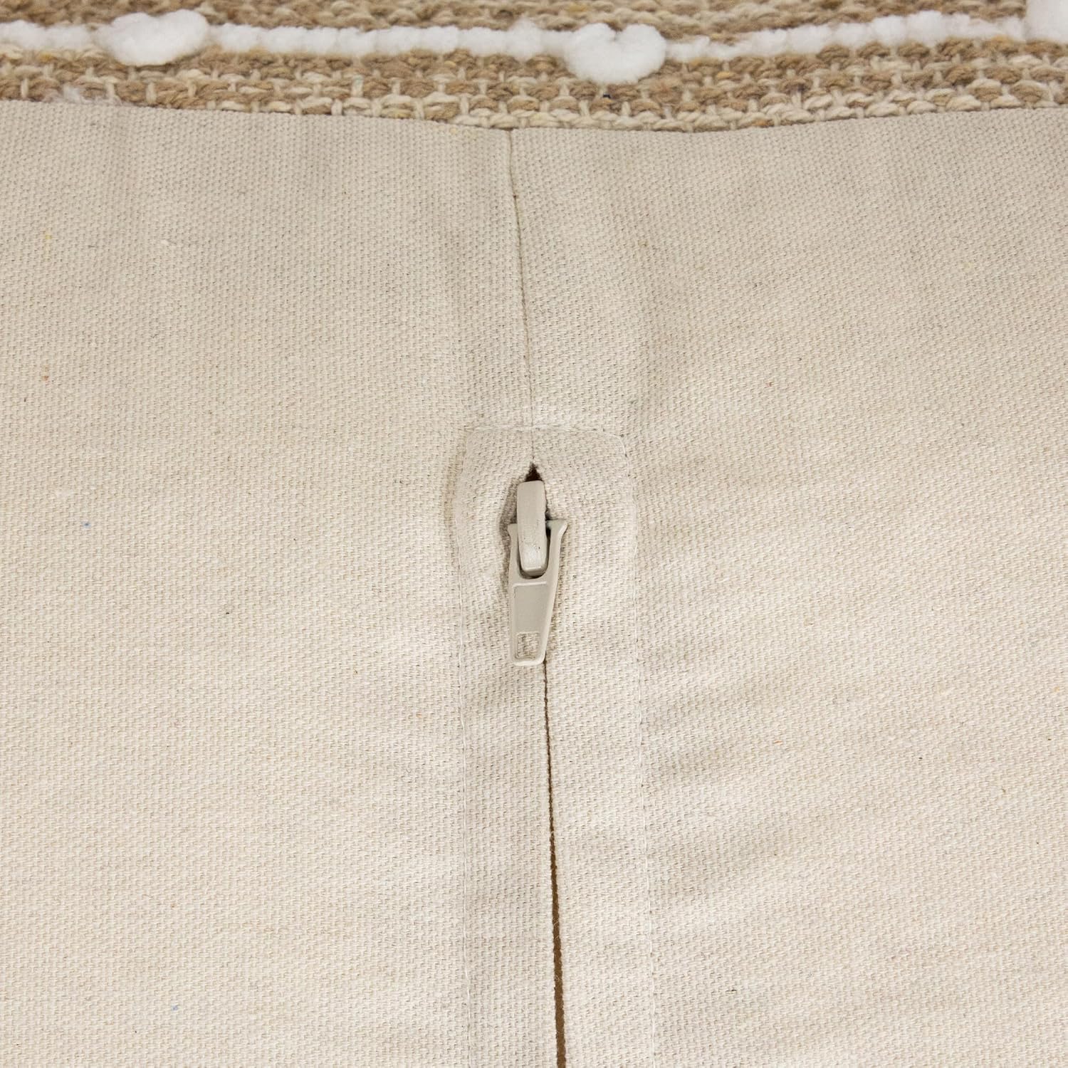 Enjoy the warm tones and striped design of this soft, woven pouf in your home. Woven from 100% cotton in an earthy beige, accented with a textured, white fringe. Has versatile use as an ottoman, extra seating for guests, or even an accent table, topped with a decorative tray. Product Features:. Woven cotton pouf ottoman. Made in an earthy, beige color. Accented with a textured white fringe. Ottoman, extra seating for guests. EPS bean filling for stability. For indoor use only Dimensions: 14”H x 18“W x 18“D. Material(s): cotton/EPS beans (expanded polystyrene)
