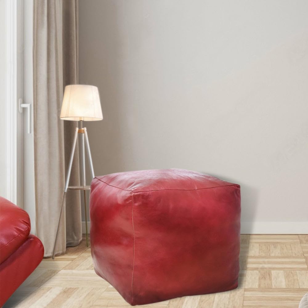This Pouf is unique and is solid, yet soft, and therefore they can be used in a variety of different ways. This brown colored pouf is simple in design yet marks a heavy statement. Made up of goat leather. Available in square shape.The dimensions of the pouf are 21x21x12.FeaturesConstruction: Handmade Eco-Friendly : Yes Material : LeatherColor : BrownSize : 21" x 21" x 12"Shape : SquarePattern : Solid Stuffed : YesStorage : YesFilled : Recycled Foam with Fibre FillWeight : 24.97 LBSUsage : IndoorItem Condition : NewCleaning : Wipe with dry clothStain Resistant : YesSeating Height : 12" Durable : YesAssembly Required : No Origin of Manufacturing: India Area Of Usage : Living Room, Study Room, Guest Room, Office, Kids Room Patio, etc.