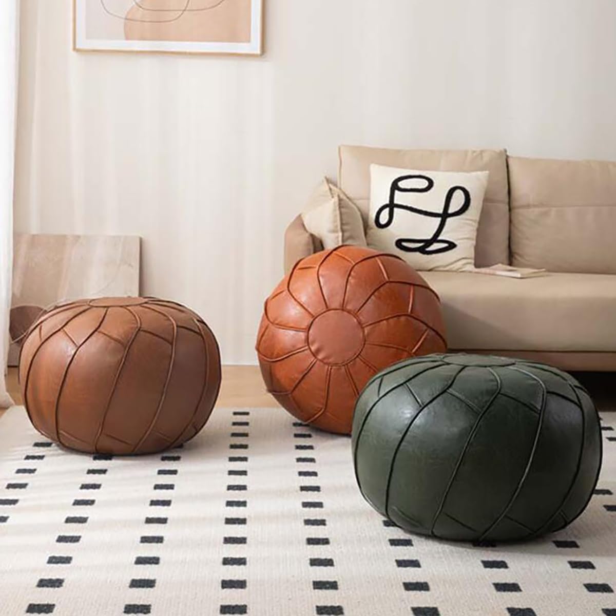 About Products :1.It stuffs it with old towels, poly fill, bubble pack, cotton batting, fabric remnants, towels, blankets, used clothes, cushion, pillow, etc.2.There is a zipper on the bottom to help you open and close and no need to sewing it.Artistic home decor, fix with Multiple styles occasions. This square Leather Pouf cushion put in living room, bedrooms, balcony, outdoor, children‘s room. About Service :We understand that customer satisfaction is crucial to our success, and we are committed to going above and beyond to ensure that you are completely satisfied with your purchase. You can trust us to work tirelessly to resolve any issues and Make sure you are satisfied with the products you have received.