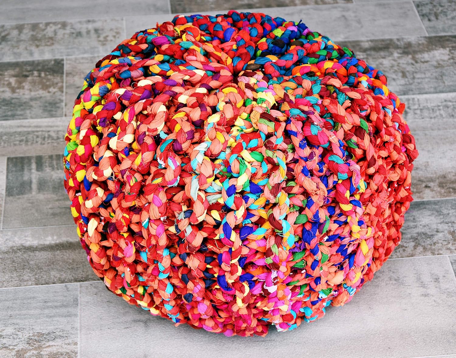 This handcrafted Pouf is a fantastic decorative addition to any home, especially during festive times. Its natural, handmade appeal is sure to be adored, and it complements virtually any decor. This vibrant, hand-knit beanbag chair/footrest is a delightful blend of comfort and style.