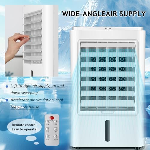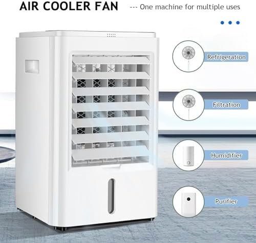 Are you concerned about the hot and humid summer daysDiscover the versatility of our 4L large-capacity air cooler, your ideal companion for year-round comfort.With a spacious 4L water tank, this air cooler operates continuously for up to 10 hours, allowing you to focus on your tasks without the need for frequent water refills.Choose from 3 wind speeds and 3 wind types to create a total of 9 customized modes. Enjoy a gentle natural wind that mimics forest breezes, a tranquil sleeping wind perfect for nighttime, or a powerful strong wind to quickly cool down your kitchen.The air cooler features left and right air supply, as well as up and down sweeping wind, providing a wide-angle, three-dimensional airflow to effectively cool a large area.Enhanced with a thickened and widened wet curtain, this unit increases the cold air contact area and delivers strong gusts for maximum refreshment.The remote control allows for effortless operation without needing to get up, making it a convenient solution.Designed for easy mobility and flexibility, you can effortlessly transition between your bedroom, living room, office, or yard with its vertical body design.Specifications:Wind direction setting: left and right air supply/up and down air sweepingMode selection: normal wind/natural wind/sleep windRated voltage: 24/12VTimer function: 1H/2H/4HCooling power: 65WGear: three speedsRated power: 50HzDimensions: 37.5*24*24cm/14.7*9.4*9.4inPacking list:1 Air cooler1 Remote control1 Instruction manualTransform your space with advanced climate control and make every corner a refreshing summer retreat.