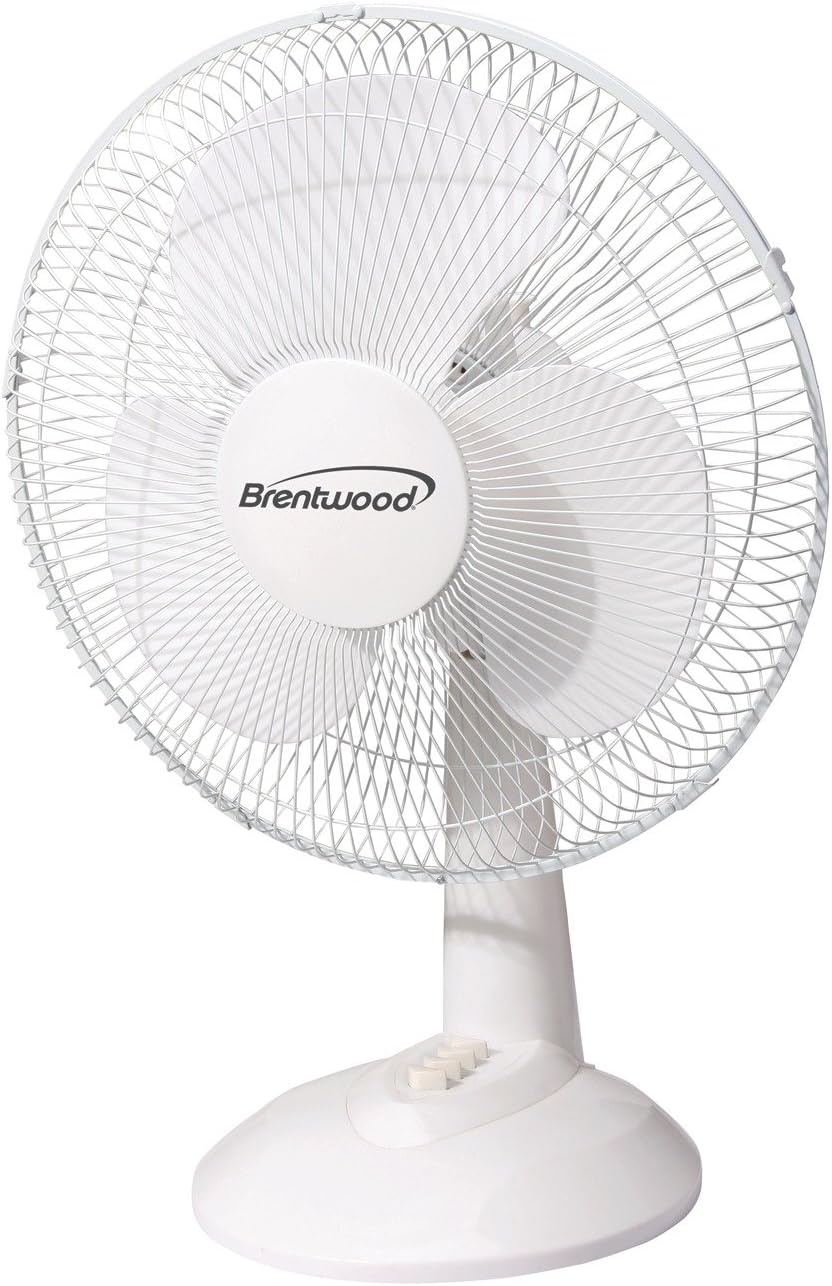 Use the 32 watt Brentwood Kool Zone F-12DW 3-Speed 12” Oscillating Desk Fan to produce intense personal cooling. Choose between 3 levels of quiet and powerful speeds. Direct air flow using the fans wide oscillation and pivoting head. Easily move the fan from room to room using the built-in handle. Stylish clean white desk fan complements modern day home and office decor.