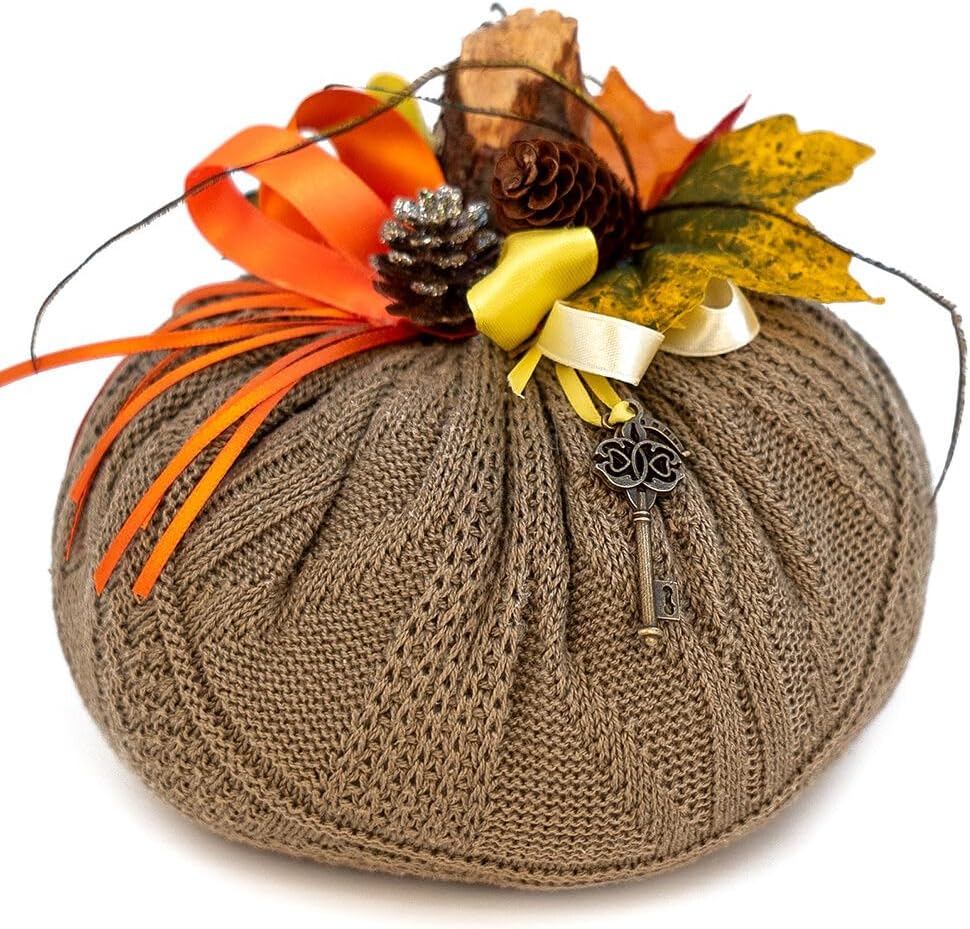 An autumn composition featuring a pumpkin (textile) measuring 6.5 x 5 inches is a wonderful way to decorate your home for the fall season. Such compositions can include various decorative elements like artificial leaves, flowers, berries, nuts, and twigs, creating a warm and cozy atmosphere.A pumpkin made from textile materials can have various shades of orange and realistic details. You can add small decorative elements like ribbons or lace to give it a unique charm.These creations are often used as decorations for tables, shelves, or even front doors to greet guests with warm autumn colors. You can also make such a composition yourself, using available materials and your creativity.