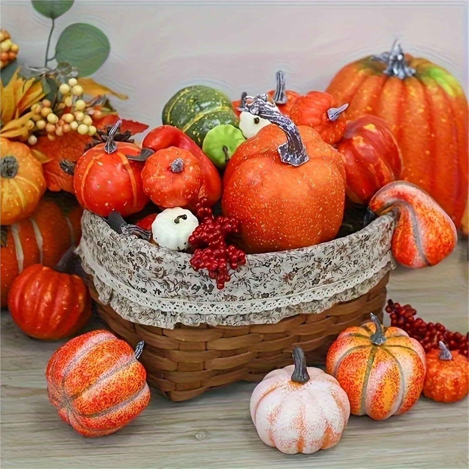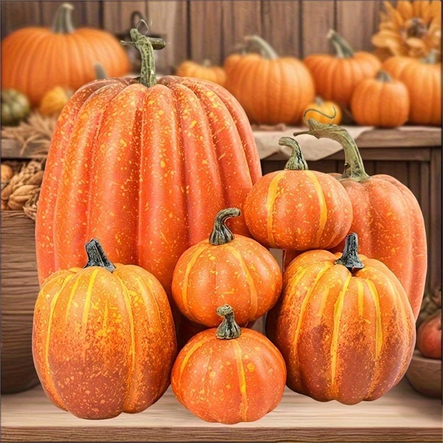 Product Name:Artificial PumpkinProduct Material:PlasticProduct Color:OrangeProduct Size:1*large pumpkin:15x21cm1*medium pumpkin:9.5x15cm2*small pumpkin:9x10cm3*mini pumpkin:6.5x7cmApplicable:Suitable for decorating homes, houses, shops, food trade display cabinets, fruit shops, supermarkets, bakeries, parties, festivals, etc.Package Contents:1set artificial pumpkin(7pcs/set)Note:1.Due to the different monitor and light effect, the actual color of the item might be slightly different from the color showed on the pictures. 2.Please allow 1-2cm measuring deviation due to manual measurement.